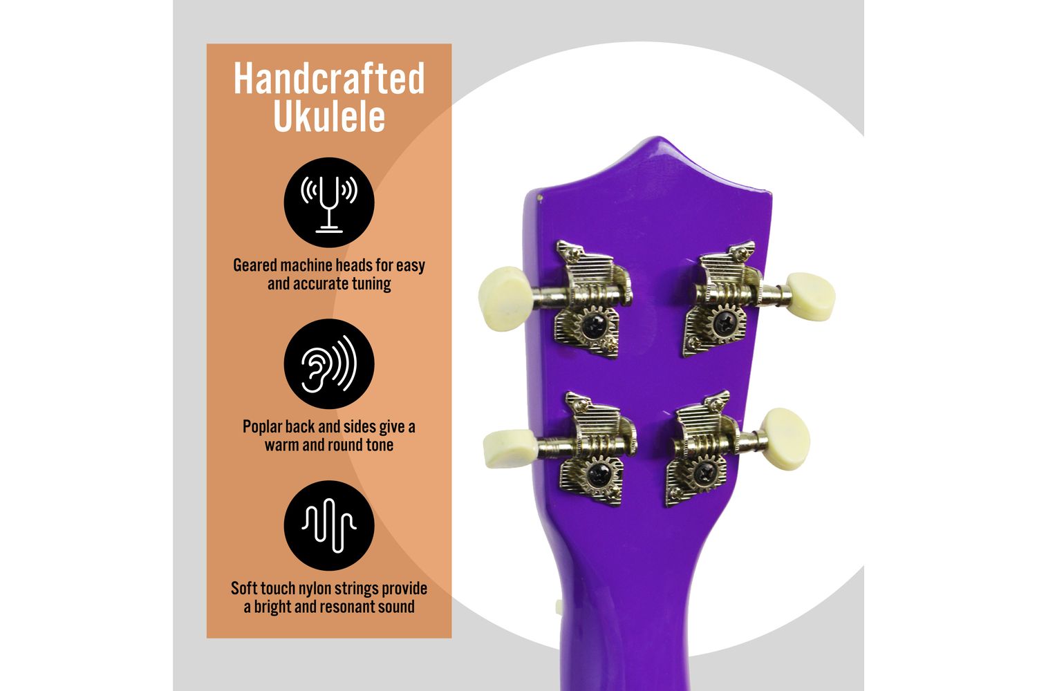 Designed for convenient handling and playing, the compact size of this ukulele makes it ideal for a child’s embrace or the portable needs of travelling music students. Reinforcing the ease of use is the bright colours and geared tuners for hassle-free tuning. Plus, students don't have hassle carrying this ukulele around the school or to private lessons thanks to its included carry bag.