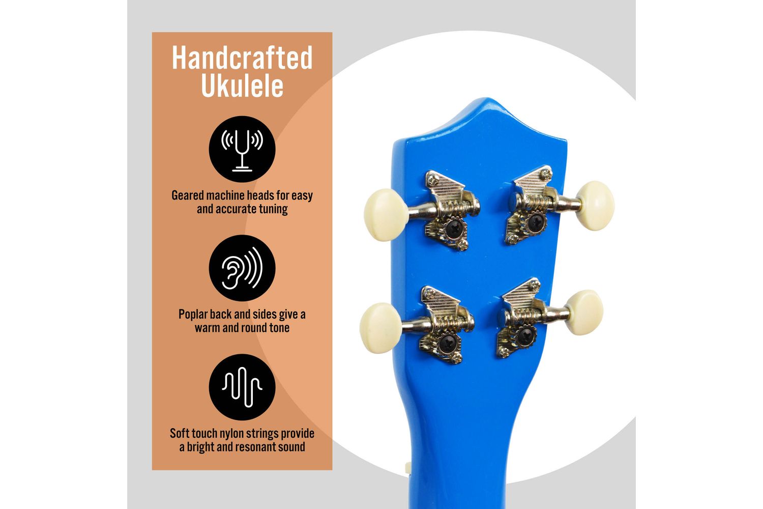 The impeccable 3-in-line geared metal machine heads ensure precise tuning, while the robust poplar bridge creates enduring stability. This feature aids in maintaining the longevity of the nylon strings, letting your melodies steadily radiate even after extended use. Incredibly playable with a practical size, you can take your creativity anywhere you desire. Unleash your inner minstrel anywhere from warm beaches to festive Irish gatherings.