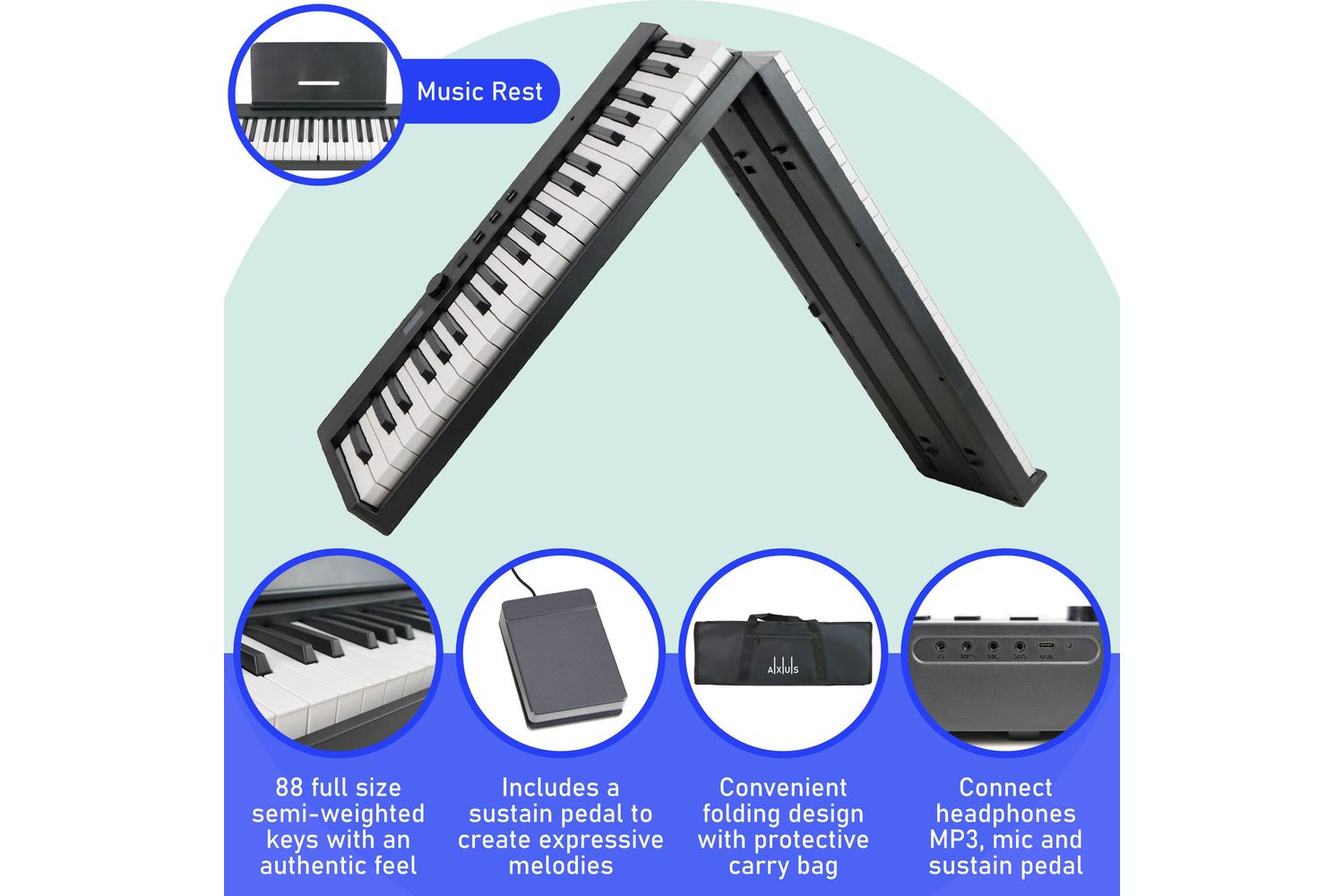 The Axus 88 Note Foldable piano doesn’t just open up a world of music to you, it also supports your musical growth. The Transpose function lets you easily adjust the pitch to better accompany various instruments or singers. No more limits, no more churning out plain vanilla sound - express your true musical self with this incredibly intuitive piano.