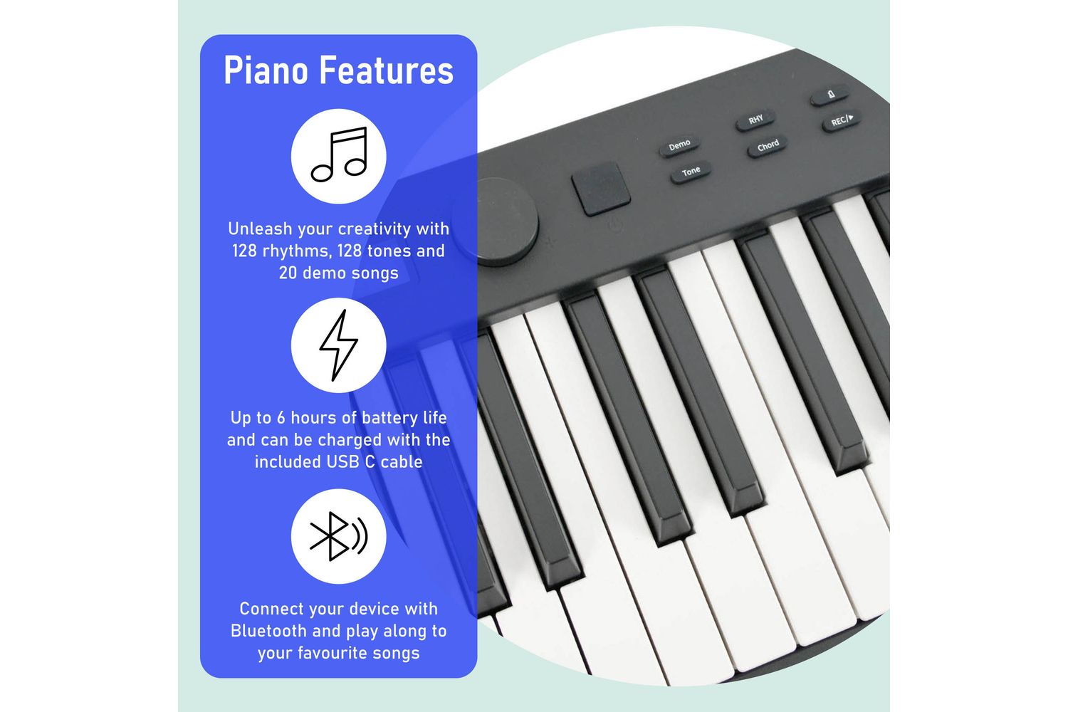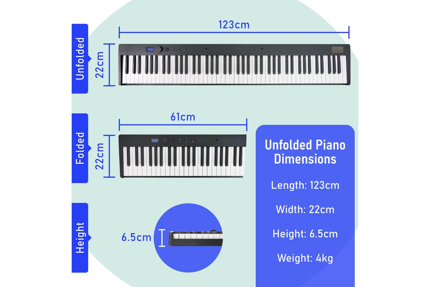This sleek, versatile, foldable digital piano is the epitome of technological advancement paired with a deep understanding of the intricate language of music. Explore a diverse range of 128 tones and rhythms, designed to replicate the grandeur of the richest grand pianos, the vivacity of strings or the mellowness of organs – all harmoniously united to bring out your creative flair. With this keyboard, every genre of music is at your fingertips, whether you're into modern pop, classical, or anything in between.