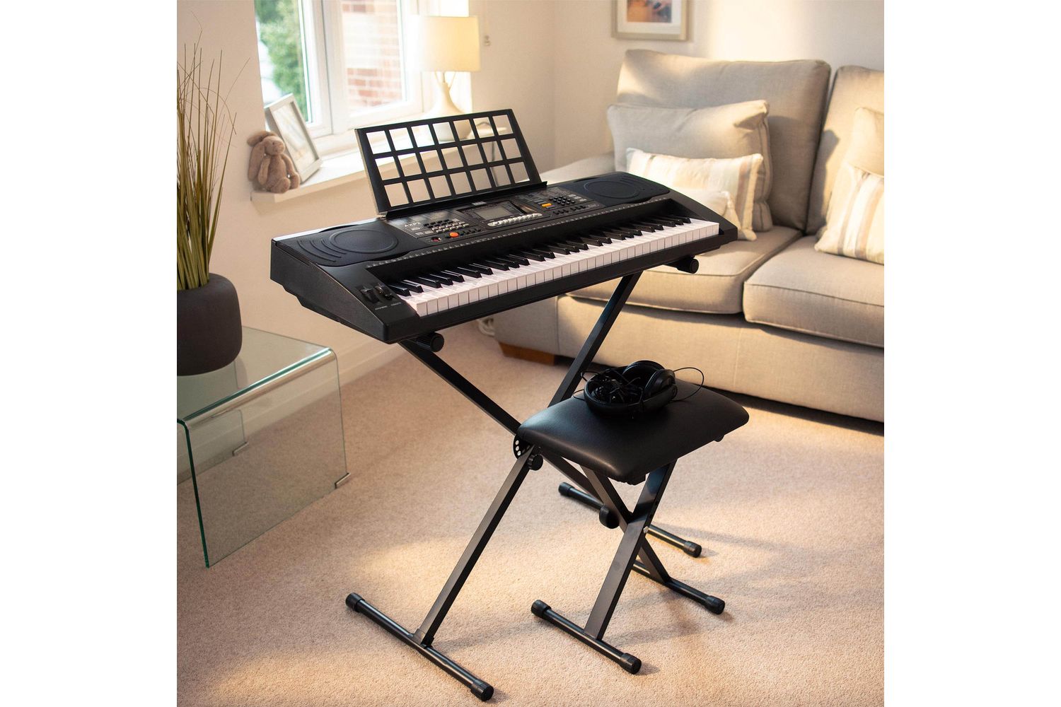 The pack also includes a mains adaptor, keyboard stand, a bench, and a pair of headphones – providing a complete set to enable immediate play out of the box. Moreover, the included music stand can help structure those practice sessions more effectively.