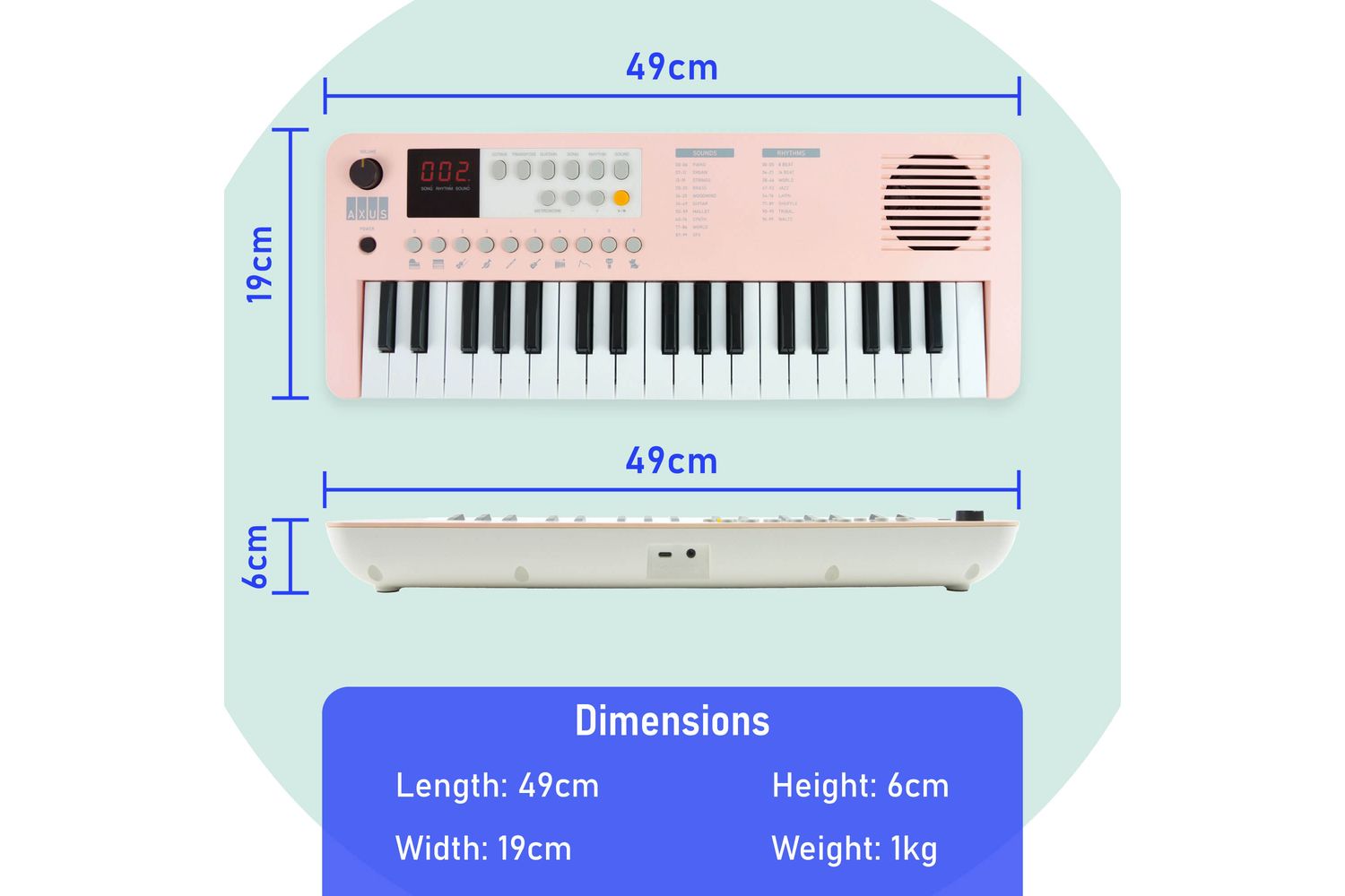 Experience versatility at the tip of your fingers with the Axus Mini Keyboard – A premier 37 key keyboard. Made from the well-recognized AXUS brand, this mini keyboard is part of the creative, fun-filled sound and music product category designed to spar the melodious imagination of those new in the world of music.