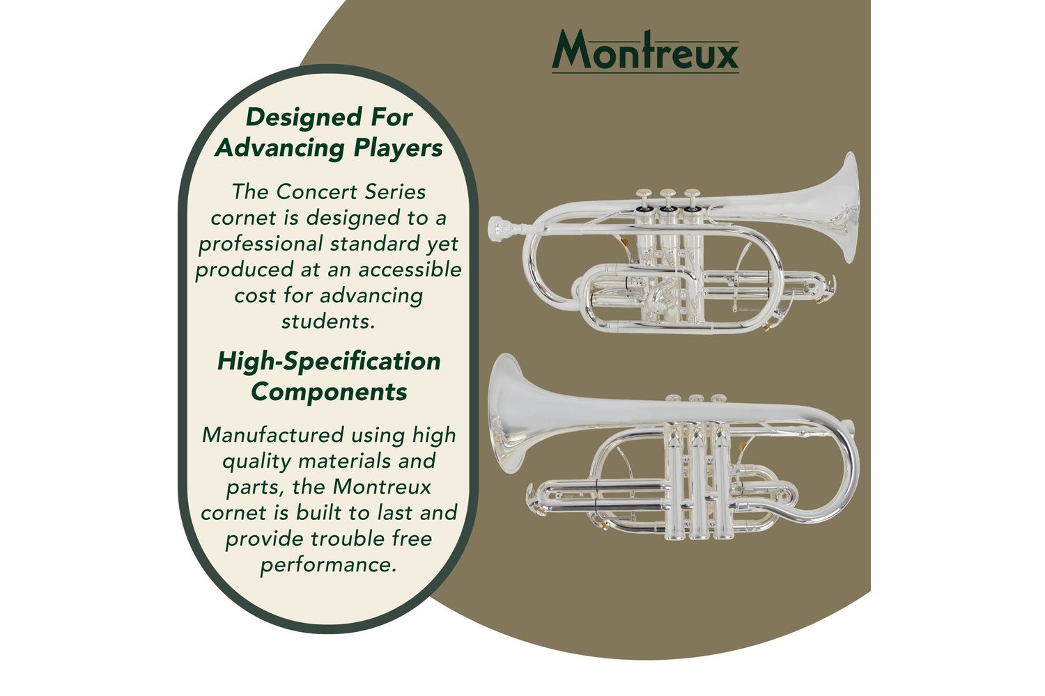 Be it a soft, mournful ballad, or an energetic, foot-tapping and hearty reel, with the Montreux Concert Series Bb Cornet, every note will reverberate in brilliant resonance and clarity!