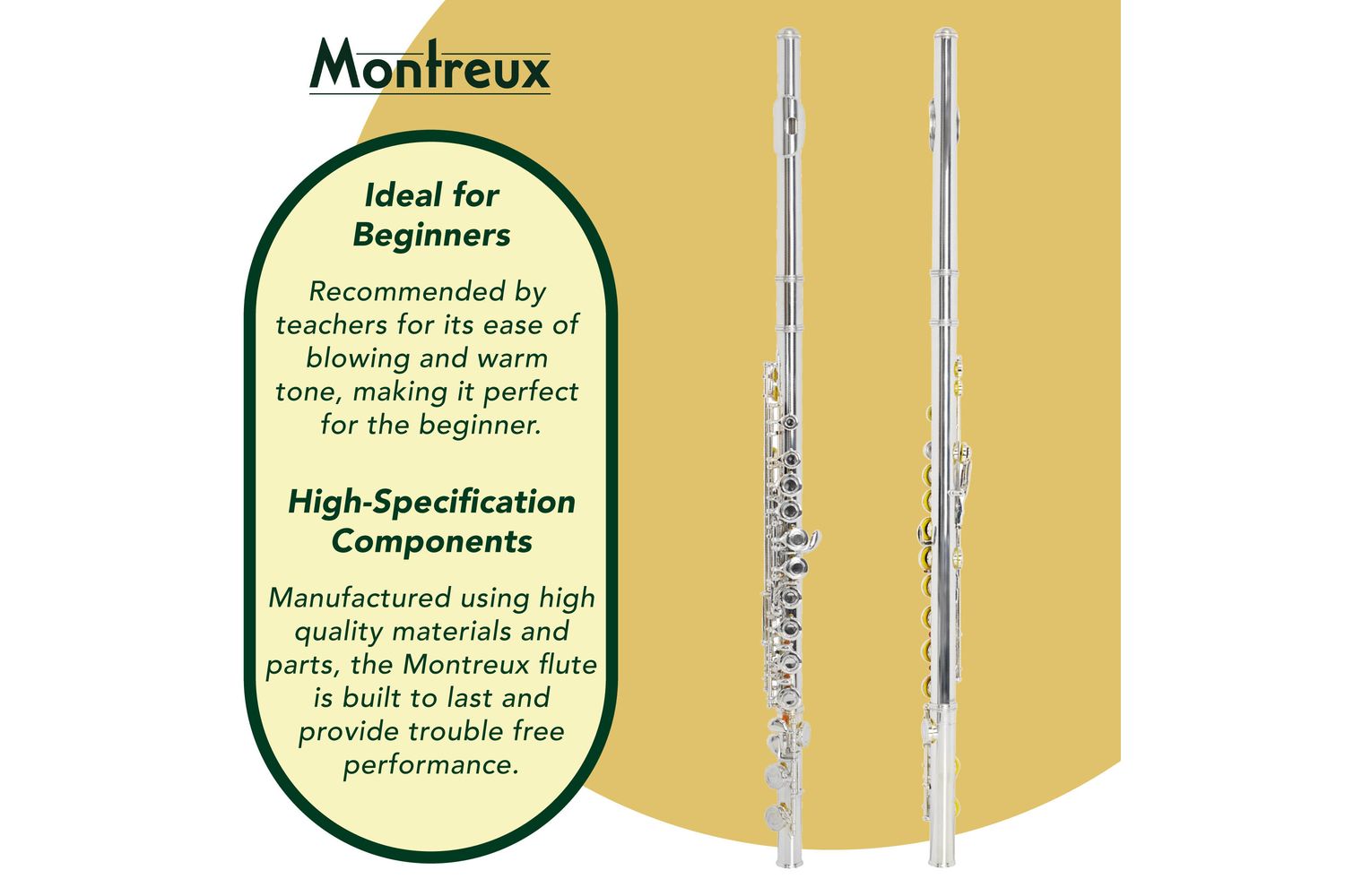 Introducing Montreux Student Flute. Designed for ease of playability, it is one of the best student flutes around and a sought-after brand endorsed by flute teachers and loved by schools across Ireland for its unmatched reliability.