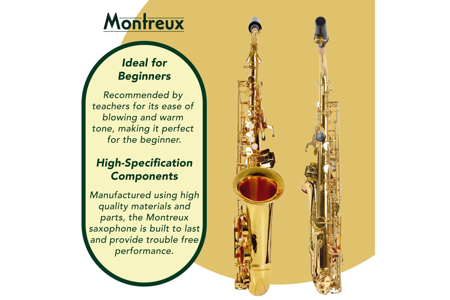 Montreux amplifies your journey into music through innovation, craftsmanship, and excellence. With a proud tradition in crafting student instruments, the Montreux Student Alto Saxophone reverberates the note-perfect harmony of dedication and desire. A treasure chest of musical dreams, this Saxophone is rightfully the first choice for anyone embarking on their musical journey.