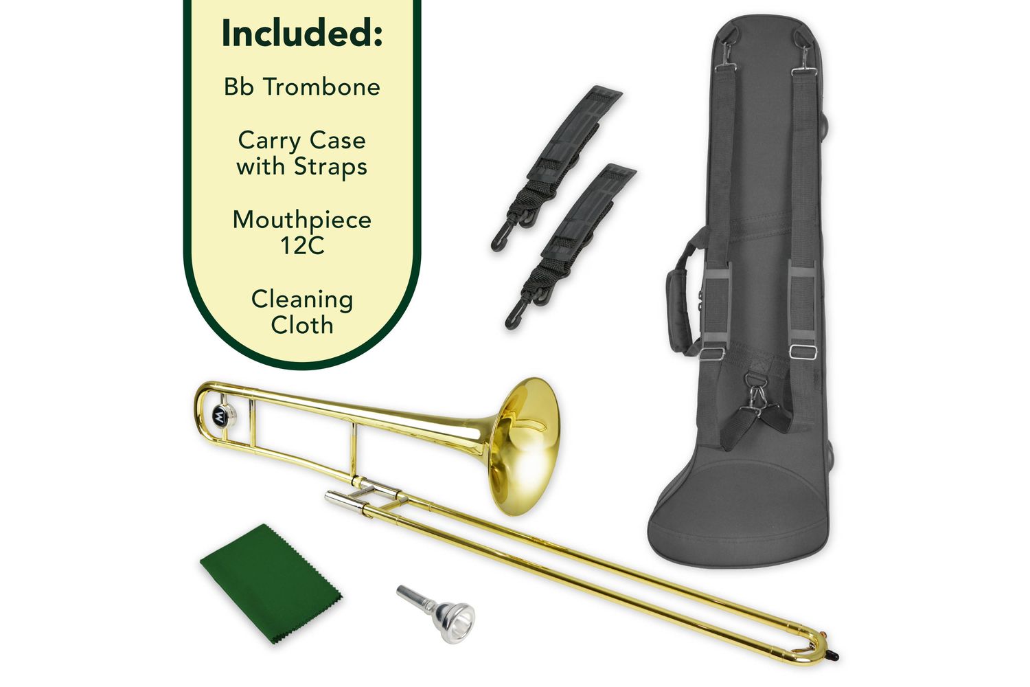 Every Maestro is complete with the right toolkit. Included with the trombone is a Bach-style mouthpiece, a testament to classic, professional standards. On your musical forays far and wide – classrooms, stages, or informal gigs – a stylish yet utilitarian case has got your back. The case doesn't skimp on fashion, sporting accessory pockets and trendy backpack-style straps for your convenience on-the-go.