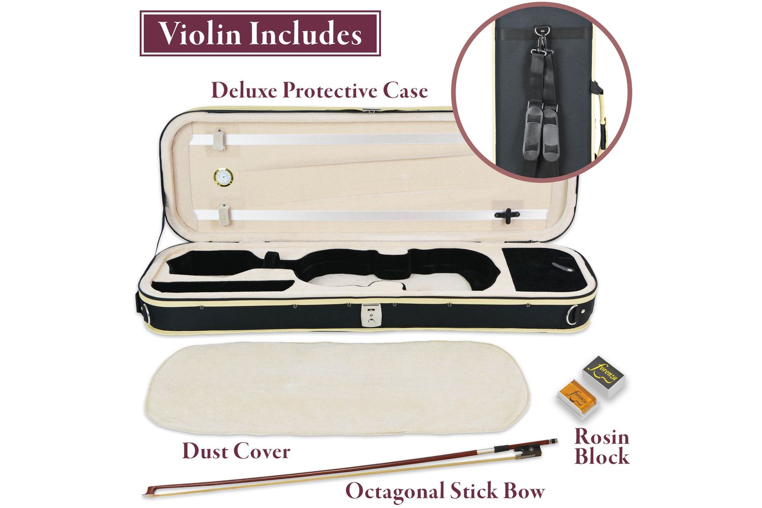 - Comes with a high quality oblong case and professional specification bow