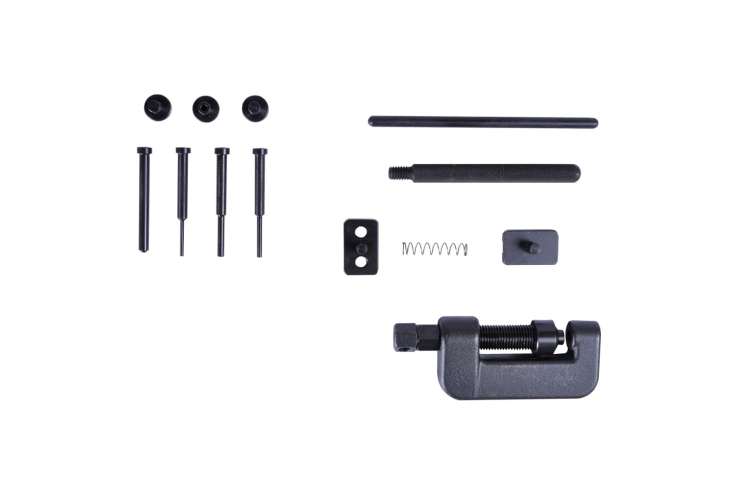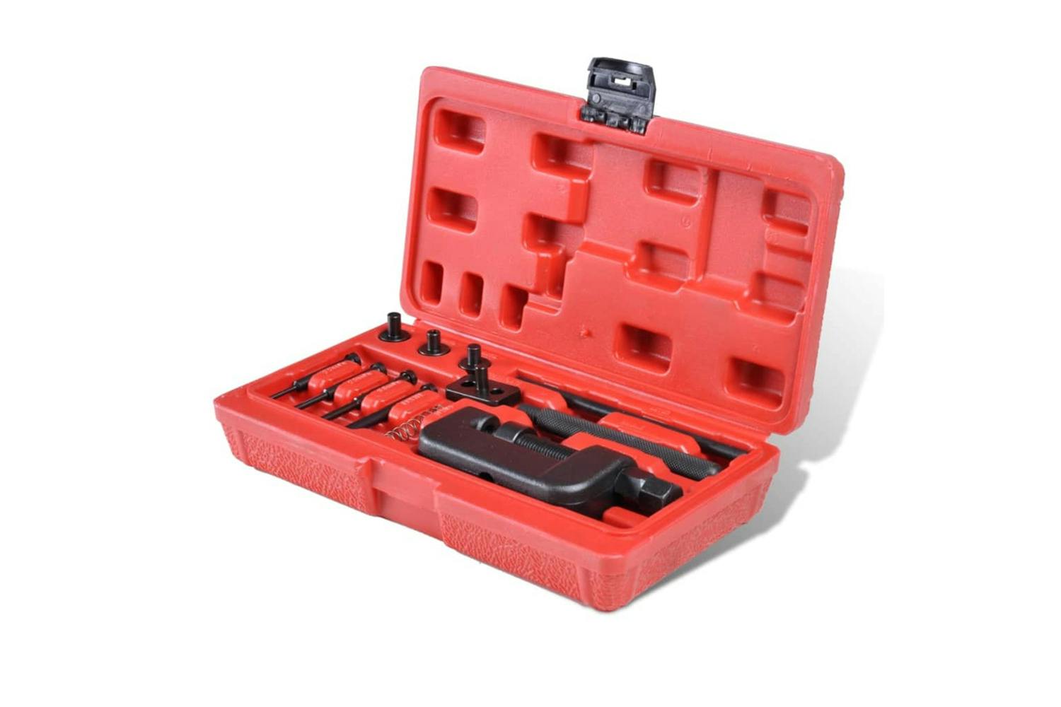 This chain splitter tool set allows easy, fast chain splitting and joining. It is versatile enough to be used on cam chains or drive chains. All tools are manufactured from high quality strong forged steel body, which is in black finish.