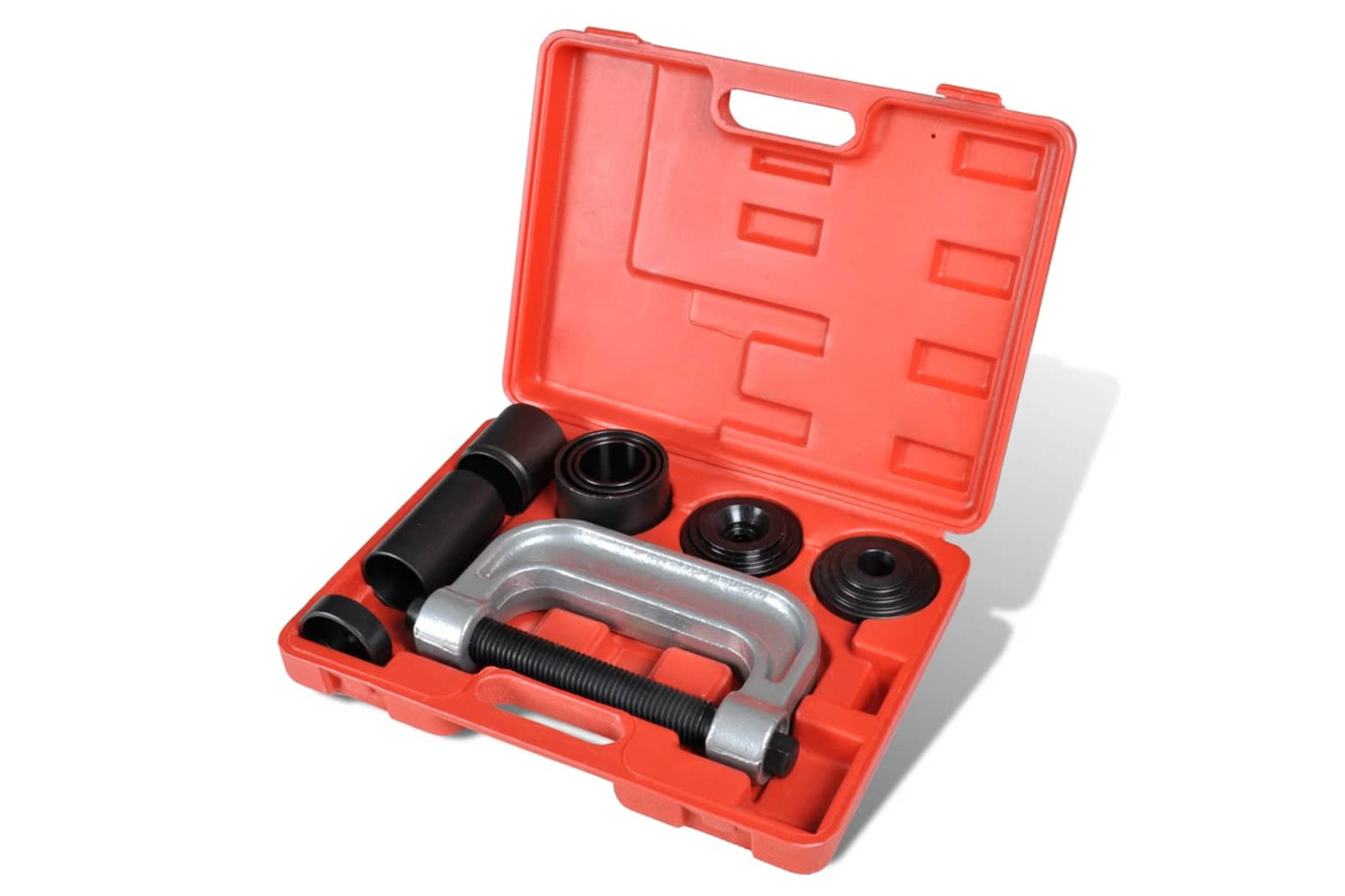 This kit contains heavy-duty C frame press, receiver tubes, and installation and removing adapters. All tools are neatly packed in a sturdy case for easy transport.