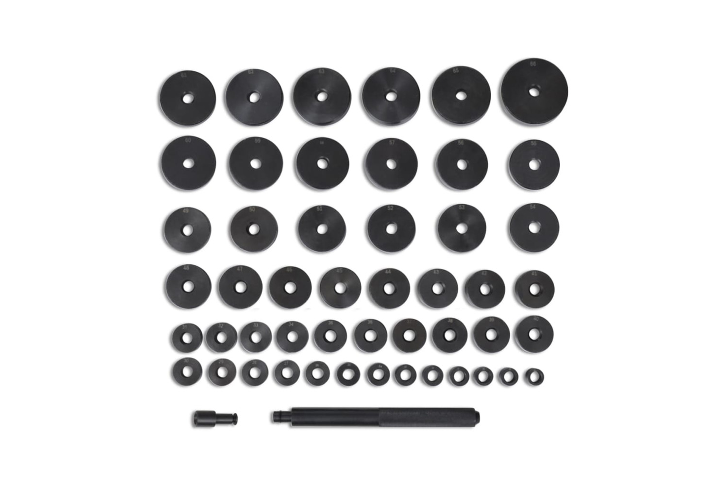 This master set allows you to build your own custom bushing driver, really a must have for garage and DIYs. It has every size you will ever need for most vehicles. No need to take the trouble to find a socket that close to the size of your bearings any more. With this kit at hand, you will just need to select the required sizes and then assemble your drivel tool, thus to get the job done promptly, efficiently and professionally.