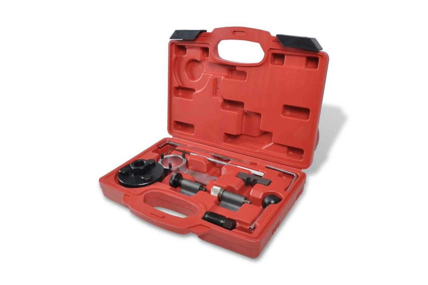 This 10 pcs timing tool set is a professional tool for commercial or DIY use. It is required for locking the camshaft and crankshaft, removal and assembly of fuel injection pumps and water pumps, adjustment of the timing belt and fixing the balance shaft.