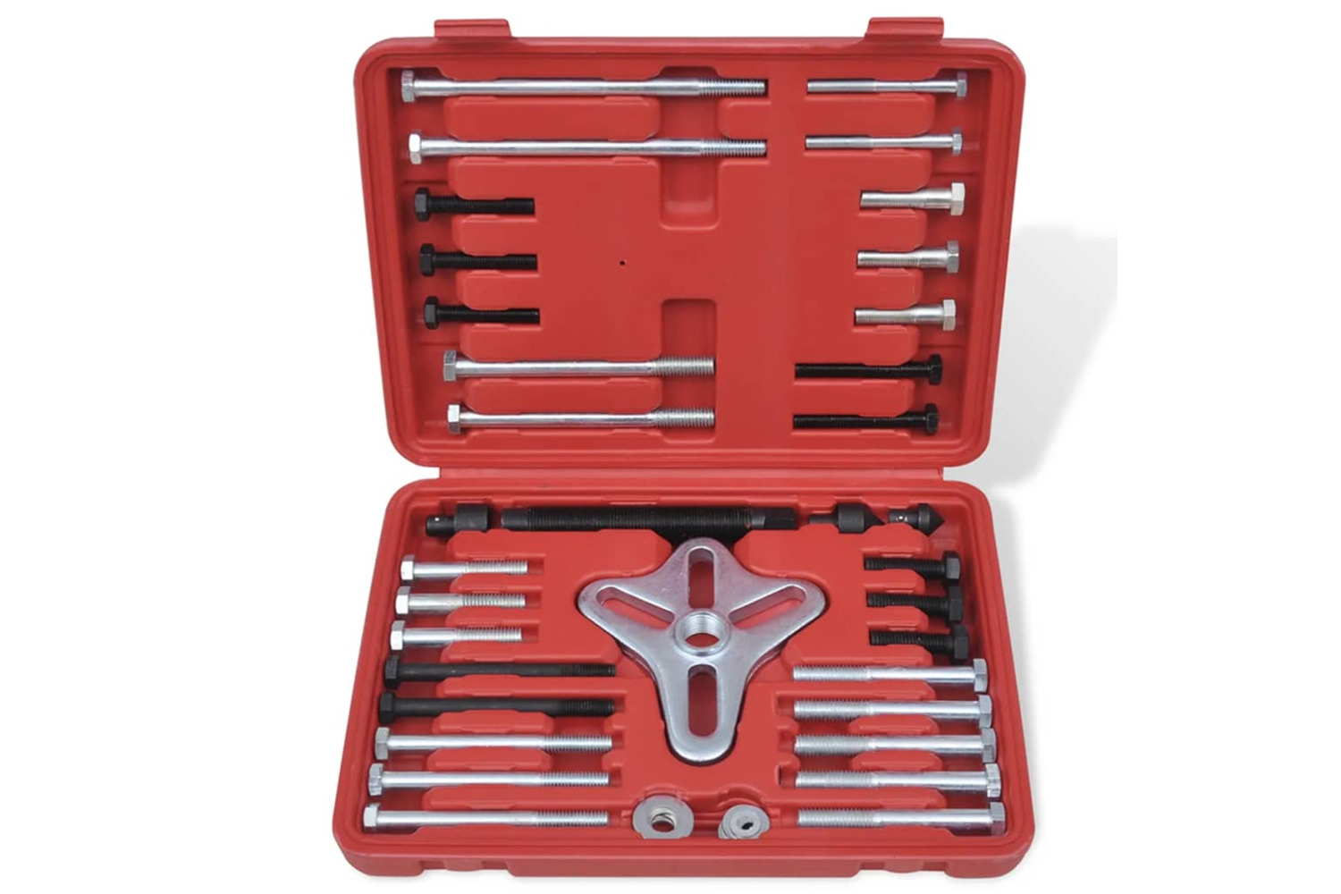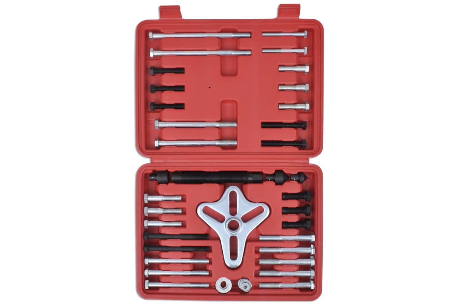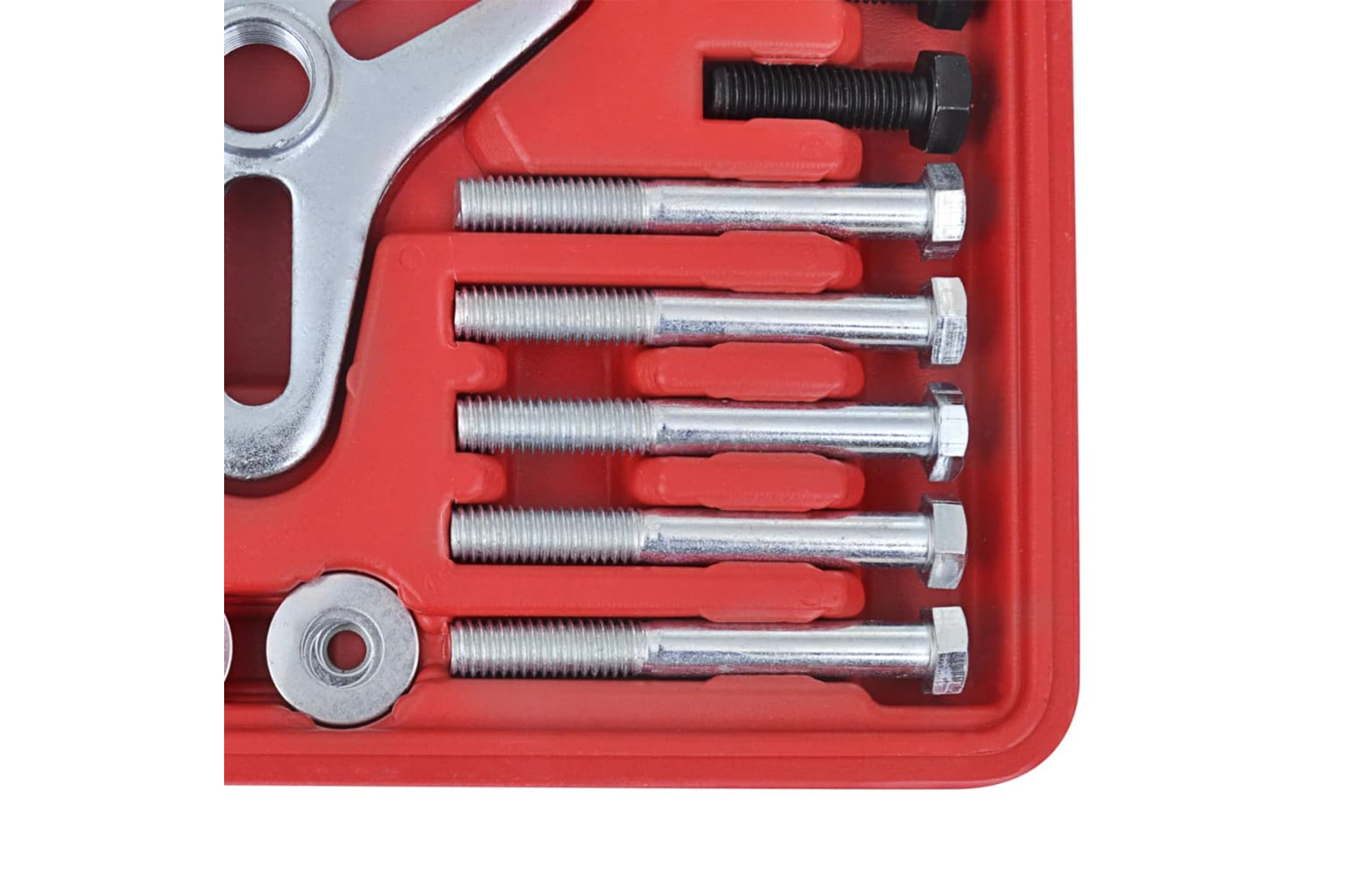 This harmonic balance puller set is designed for removing harmonic balancers, gear pulleys, steering wheels and flywheels.