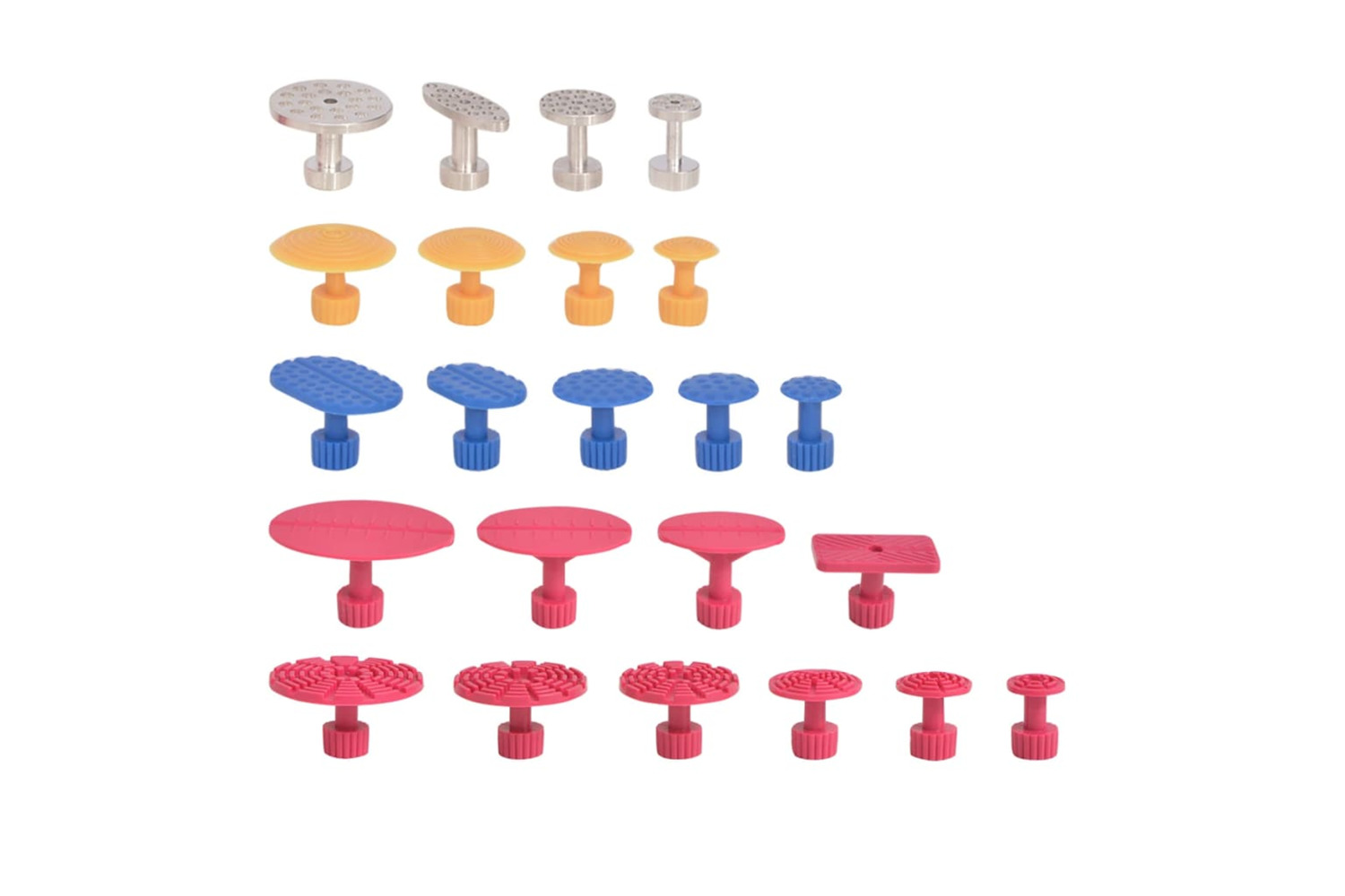 This 24-piece set contains 23 glue tabs and a dent lifter and is ideal for paintless dent repair. The dent lifter is very strong and durable. The underside of the dent lifter is soft and will not damage your car's paint job. It is simple to operate. With this DIY paintless dent repair set, you can save you a lot of costs after a minor accident.