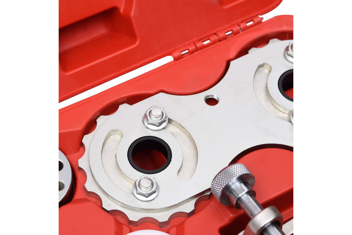 Our tools are exceedingly sturdy and durable, ensuring a long service life. It features a special design to position the engine camshaft and crankshaft correctly in the side cover. All pieces are delivered in a handy blow-moulded case for easy storage and transportation.