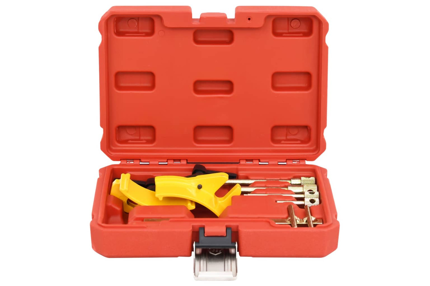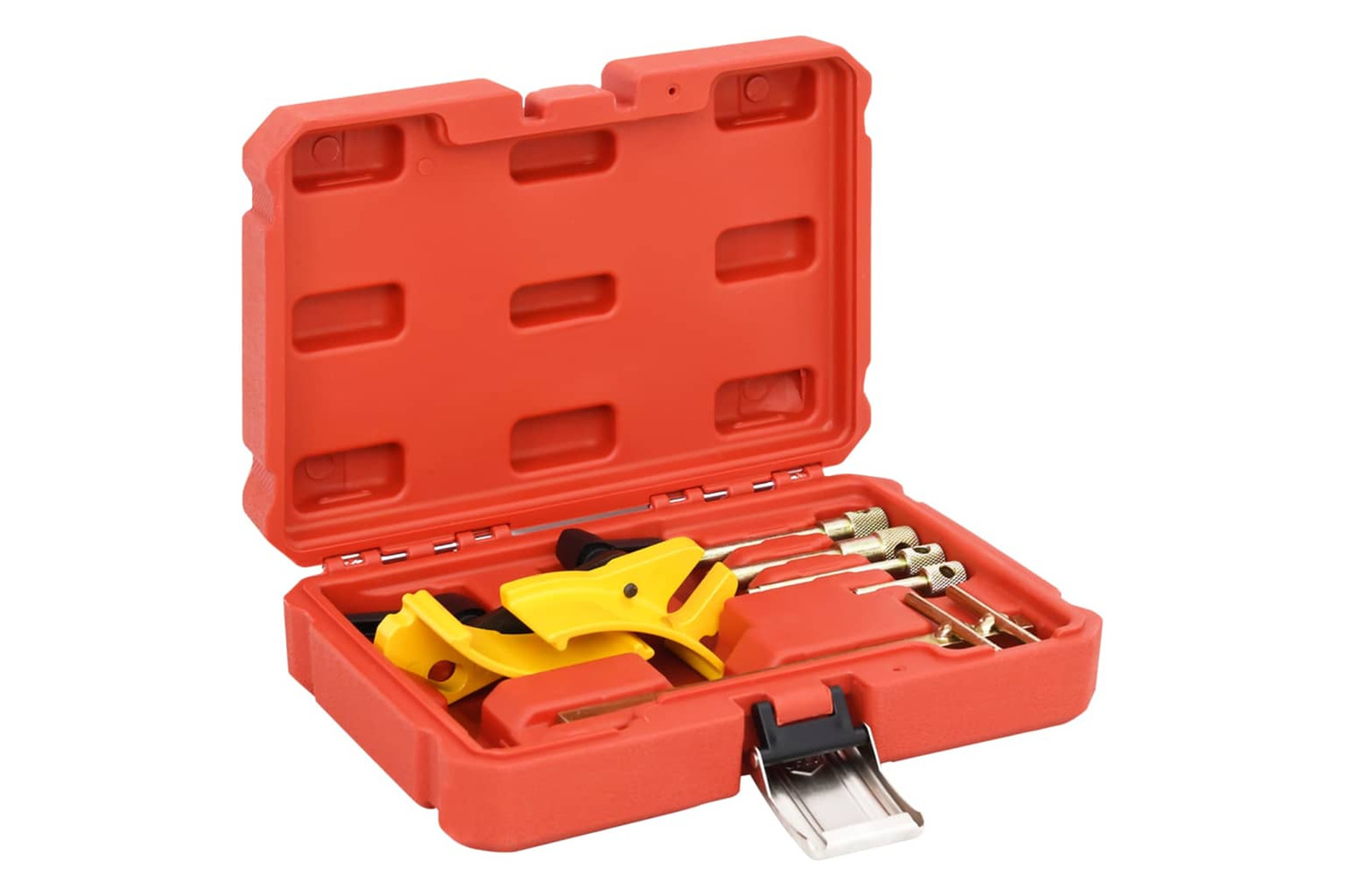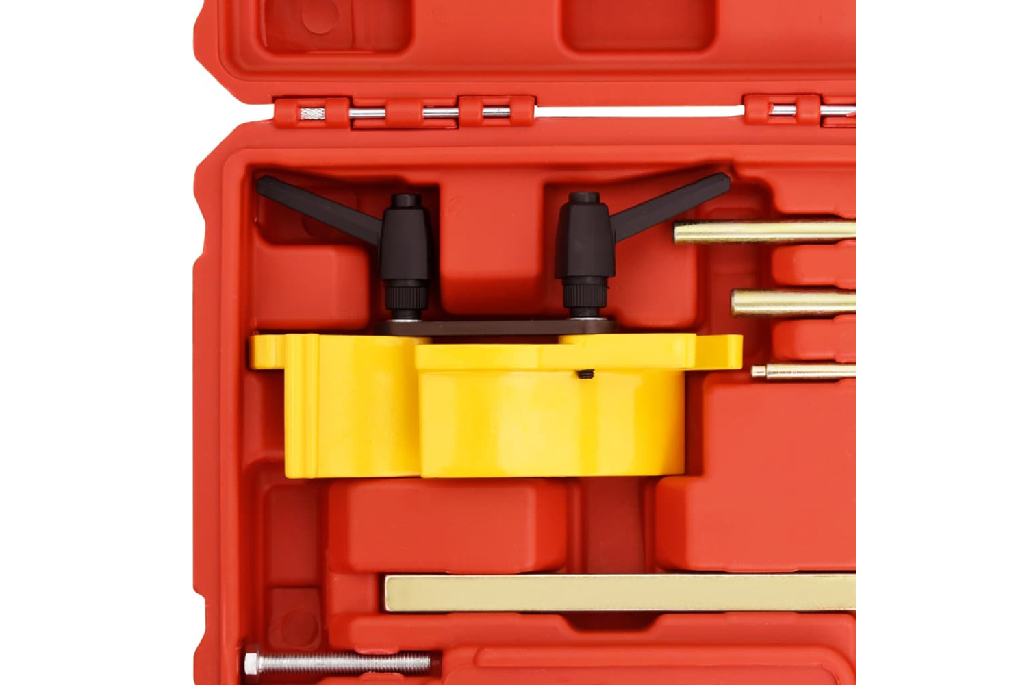 This engine timing tool set is suitable to solve problems for the following car models: Renault, Opel, Volvo, Mitsubishi and Chrysler. The included tools are sturdy and durable for long-term use. All pieces are organised in a case for easy storage and transportation.