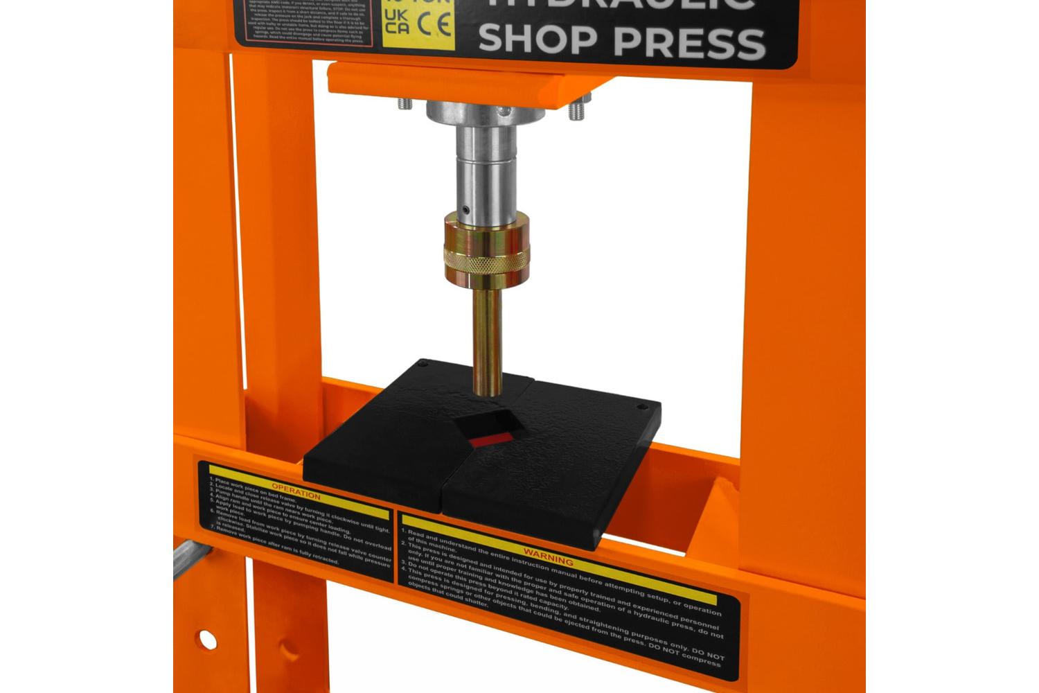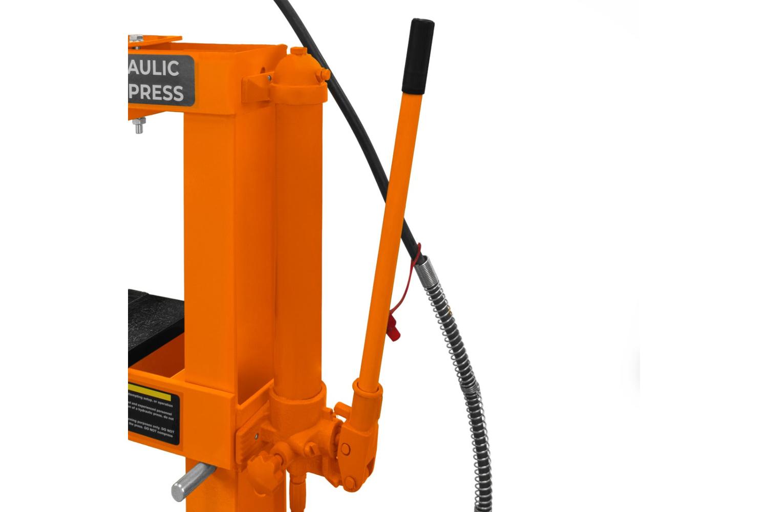 Built for longevity with a strong powder-coated steel frame, this highly durable shop press features a massive ten-tonne pressing capacity. It's perfect for installing or removing pressure-fitted engine parts and precisely shaping metal, making it an outsourcing asset in any Irish garage or workshop. What's more, its stunning orange finish guarantees both eye-catching aesthetic appeal and extra durability for years to come.