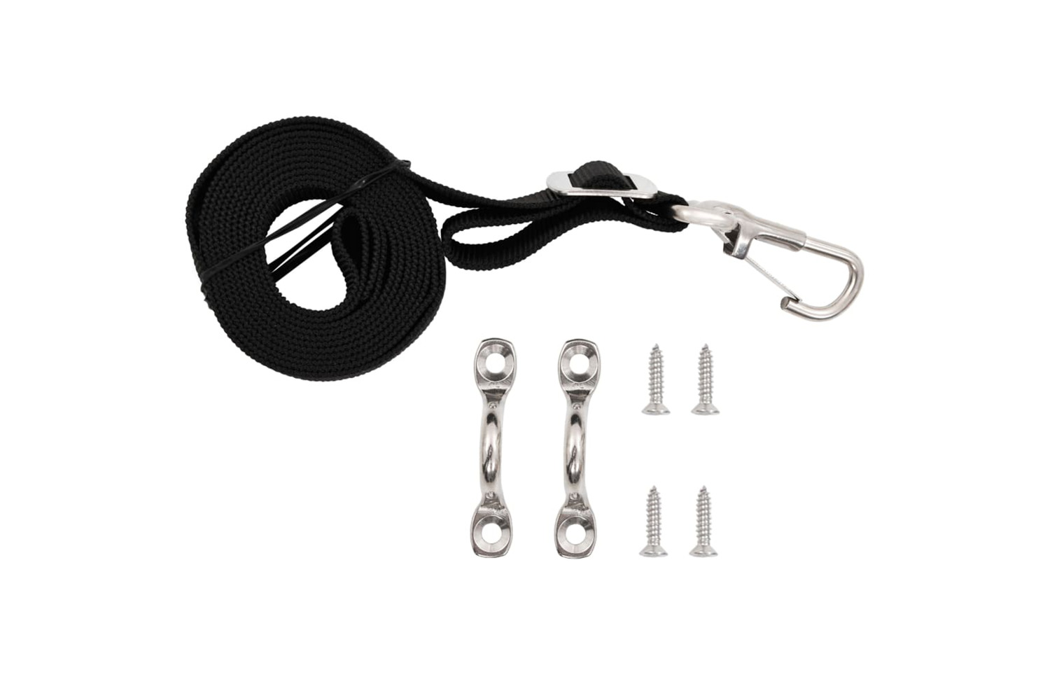 Delivery includes 2 straps with SS 304 clips, 4 mounting screws and 2 eye hooks with stainless steel 316 Marine grade.