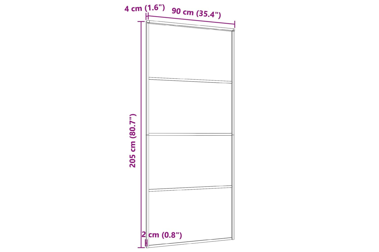 - Door size: 90 x 205 cm (W x H)
