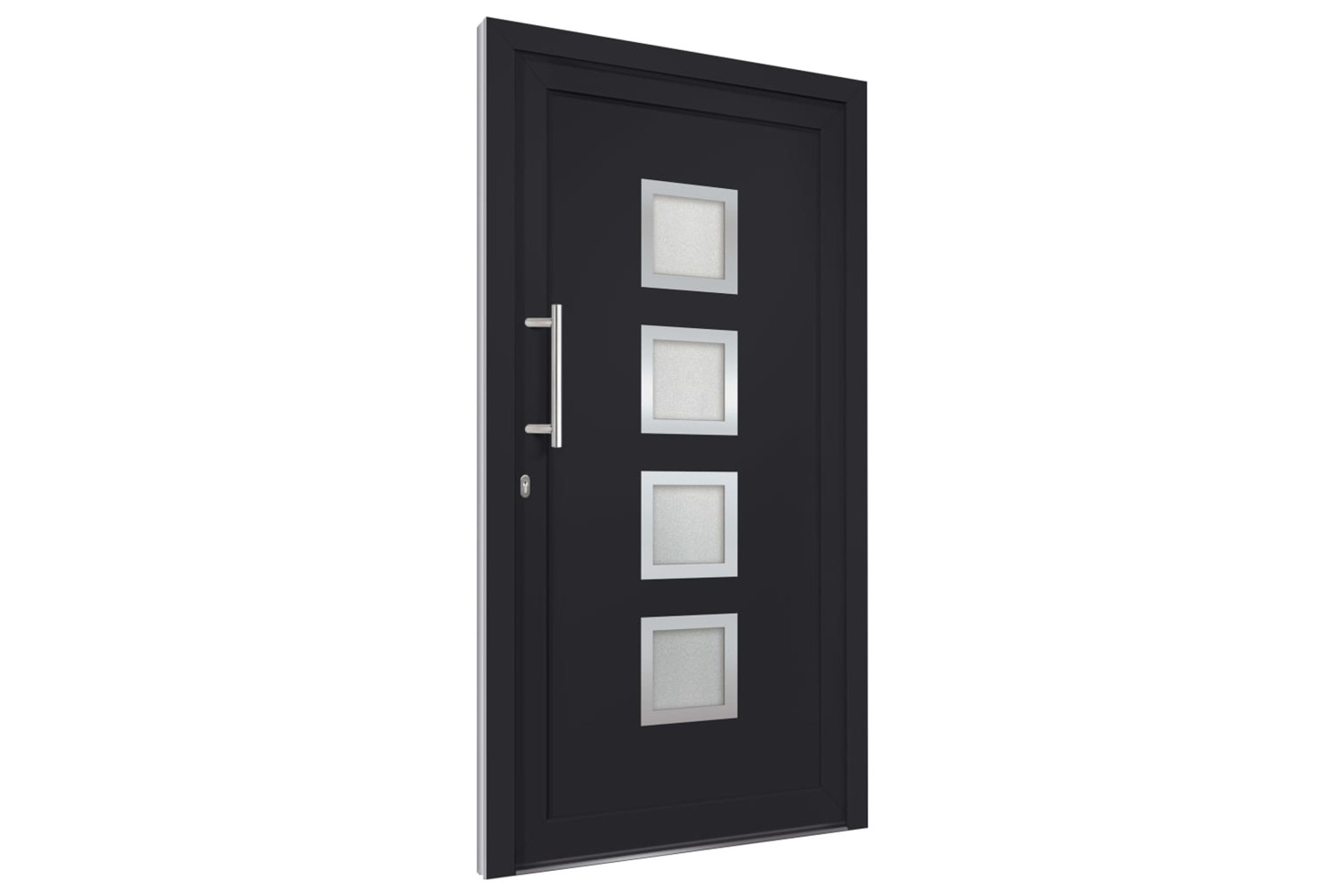 Our entrance door is equipped with quality frame and filling, aluminium threshold, 3d adjustable hinges (3 hinges per door), 5 mushroom-head locks, insulating glazing and 1.2 mm steel reinforcement. Additionally, the aluminium entry door will impress you with the robust quality and high locking convenience.