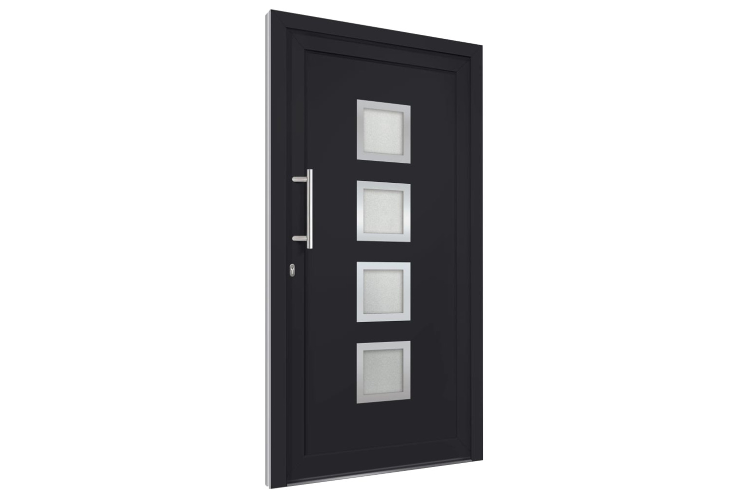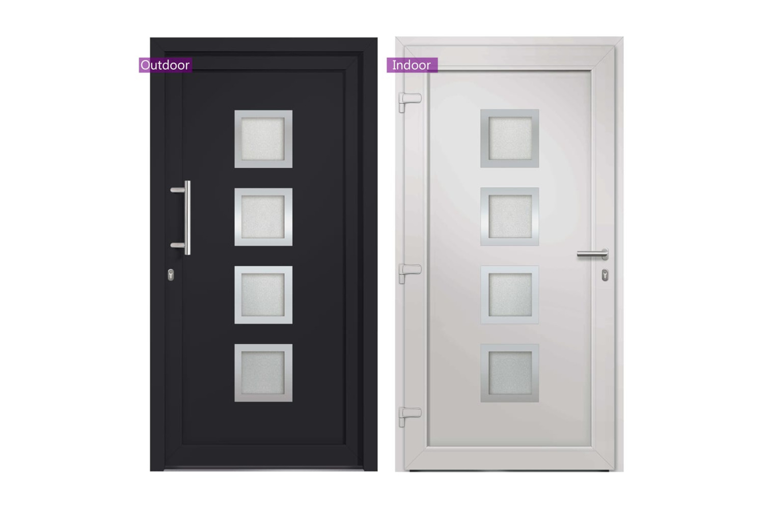 Our entrance door is equipped with quality frame and filling, aluminium threshold, 3d adjustable hinges (3 hinges per door), 5 mushroom-head locks, insulating glazing and 1.2 mm steel reinforcement. Additionally, the aluminium entry door will impress you with the robust quality and high locking convenience.