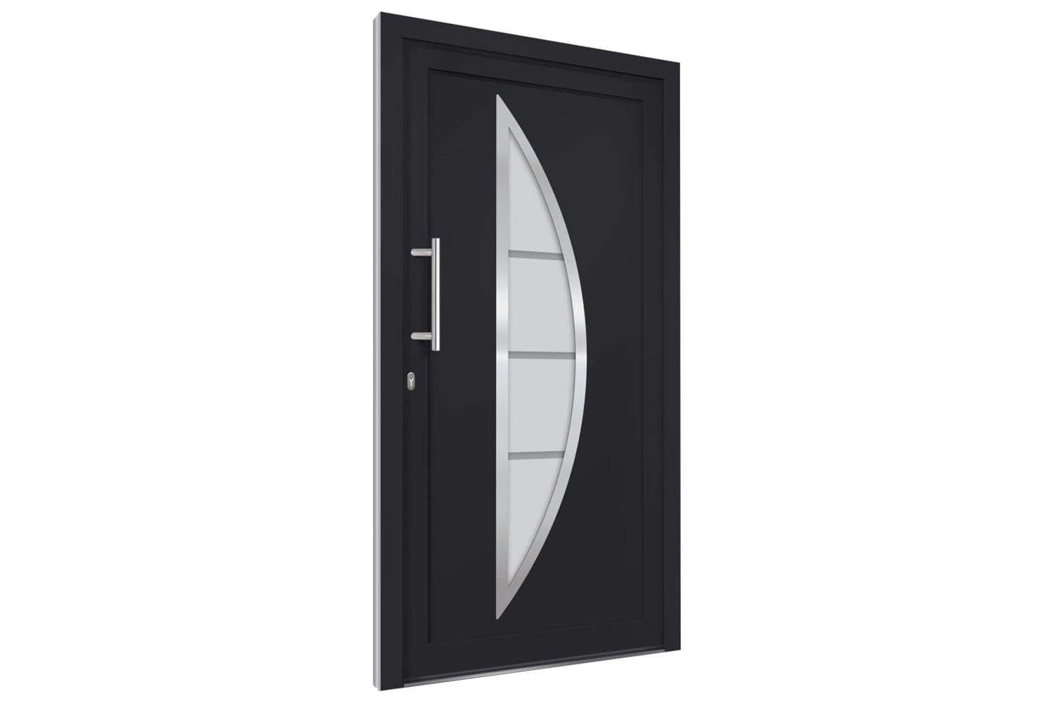 Our entrance door is equipped with quality frame and filling, aluminium threshold, 3d adjustable hinges (3 hinges per door), 5 mushroom-head locks, insulating glazing and 1.2 mm steel reinforcement. Additionally, the aluminium entry door will impress you with the robust quality and high locking convenience.