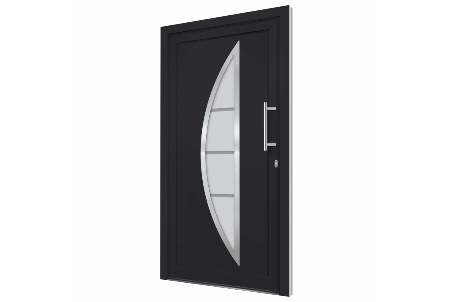 Our entrance door is equipped with quality frame and filling, aluminium threshold, 3d adjustable hinges (3 hinges per door), 5 mushroom-head locks, insulating glazing and 1.2 mm steel reinforcement. Additionally, the aluminium entry door will impress you with the robust quality and high locking convenience.