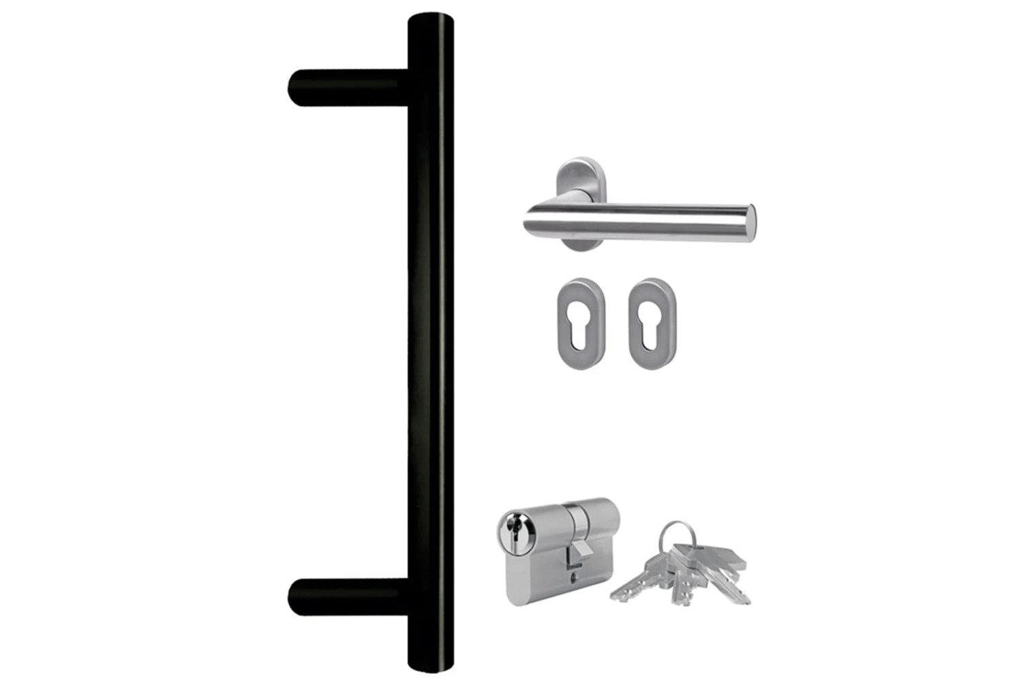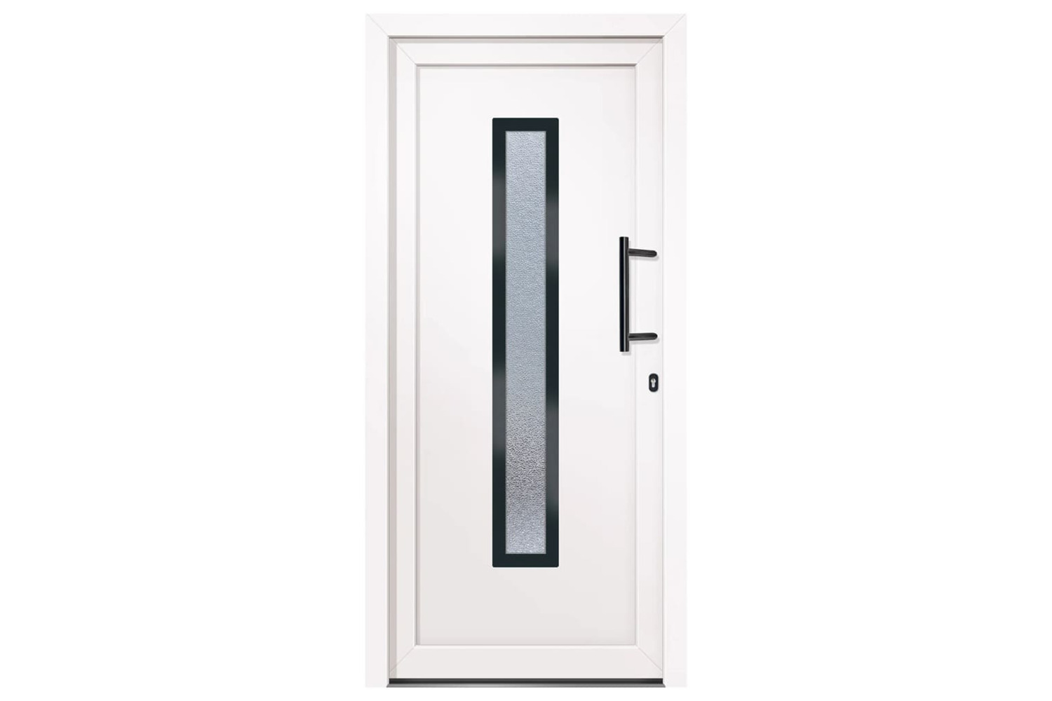 - Safe design: This entry door is equipped with a quality frame, aluminium threshold, 5 mushroom-head locks, insulating glazing and 1.2 mm steel reinforcement to ensure additional security.
