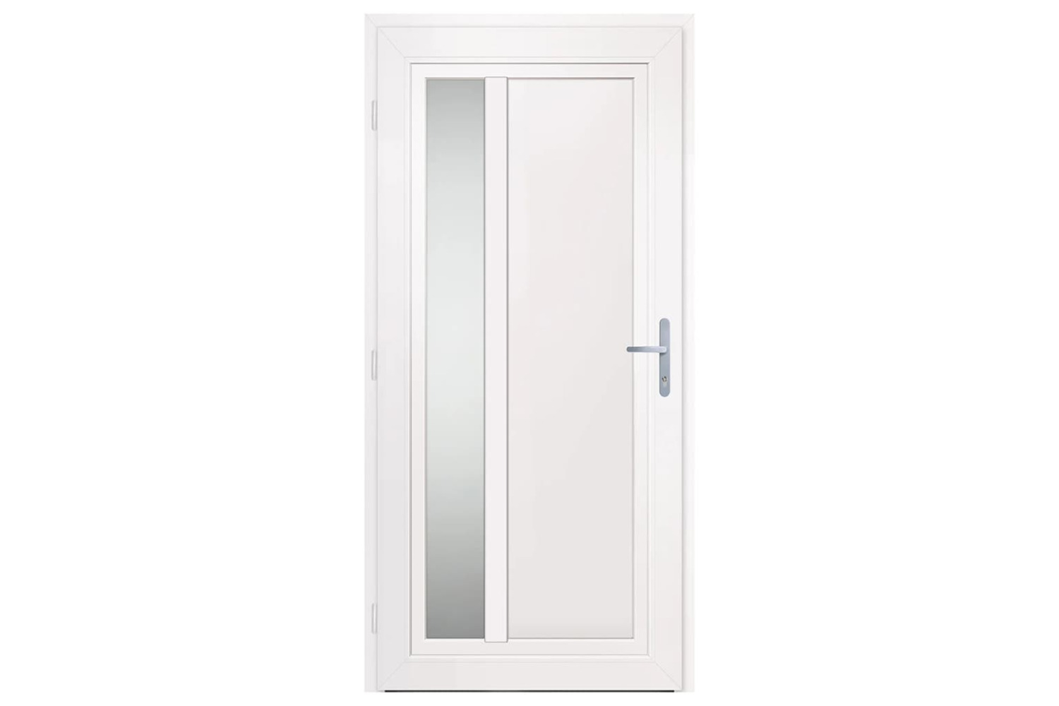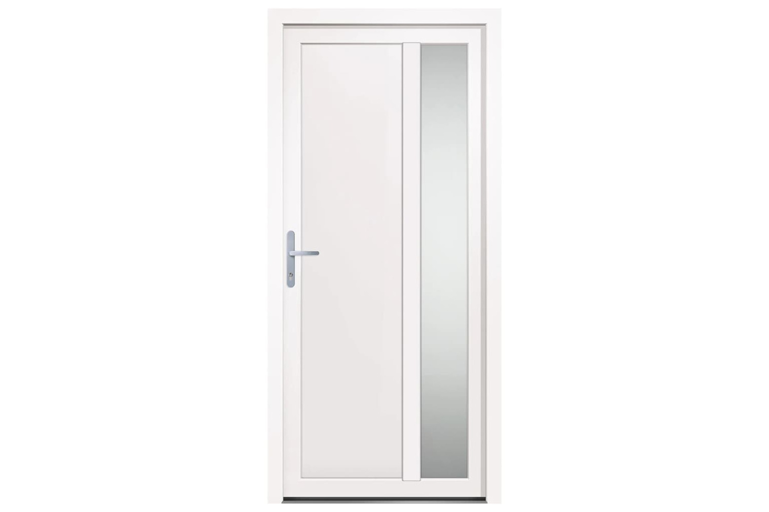 - Safe design: This entry door is equipped with a quality frame, aluminium threshold, 5 mushroom-head locks, insulating glazing and 1,2 mm steel reinforcement to ensure additional security.