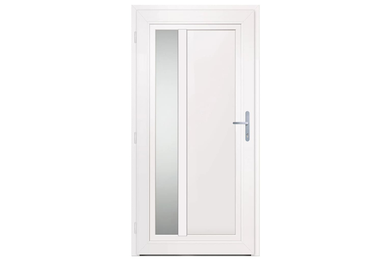 - Safe design: This entry door is equipped with a quality frame, aluminium threshold, 5 mushroom-head locks, insulating glazing and 1,2 mm steel reinforcement to ensure additional security.