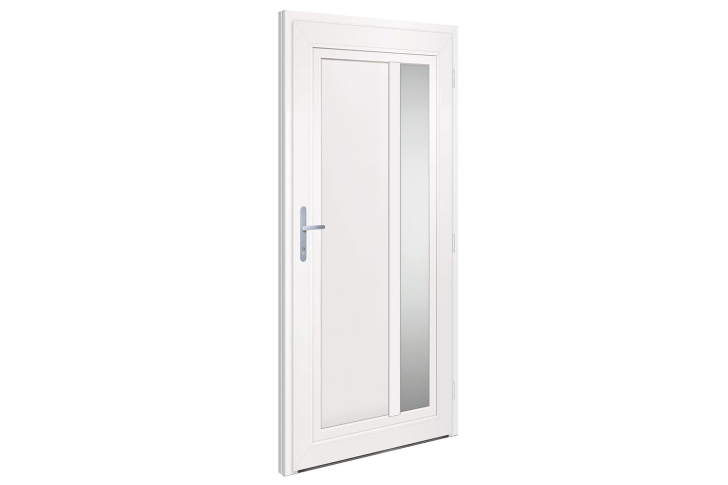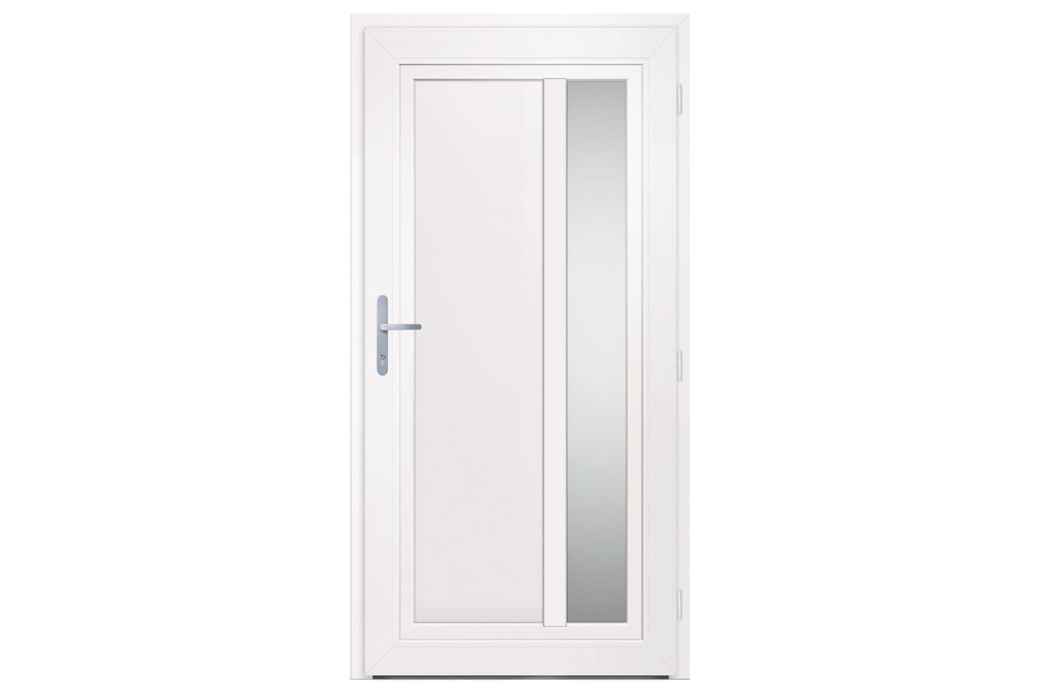 - Safe design: This entry door is equipped with a quality frame, aluminium threshold, 5 mushroom-head locks, insulating glazing and 1,2 mm steel reinforcement to ensure additional security.