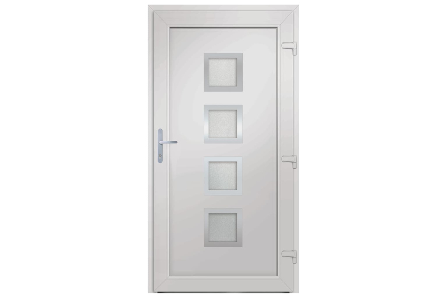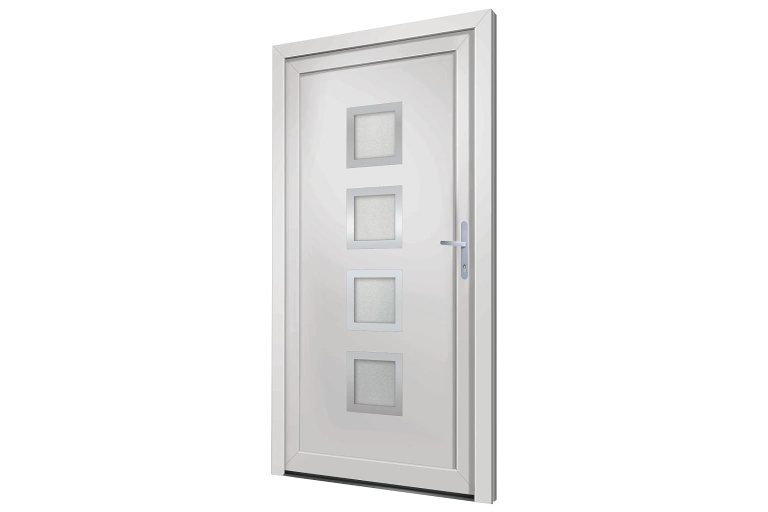 - Safe design: This entry door is equipped with a quality frame, aluminium threshold, 5-point mushroom pin locking, insulating glazing and 1,2 mm steel reinforcement to ensure additional security.