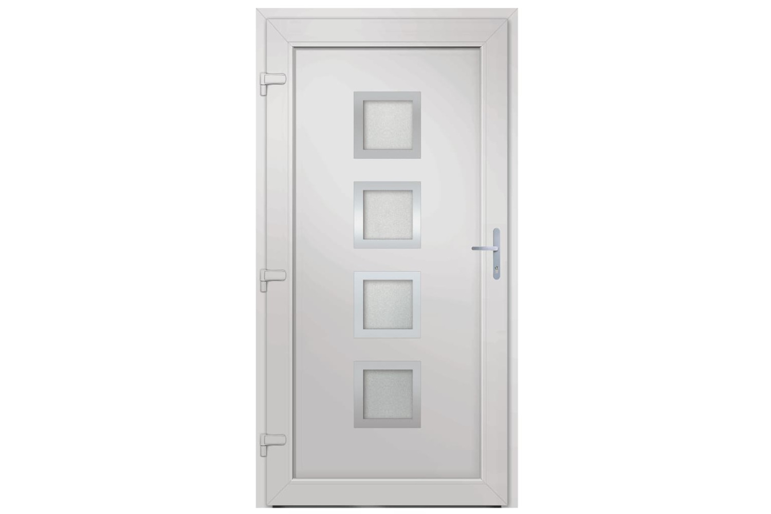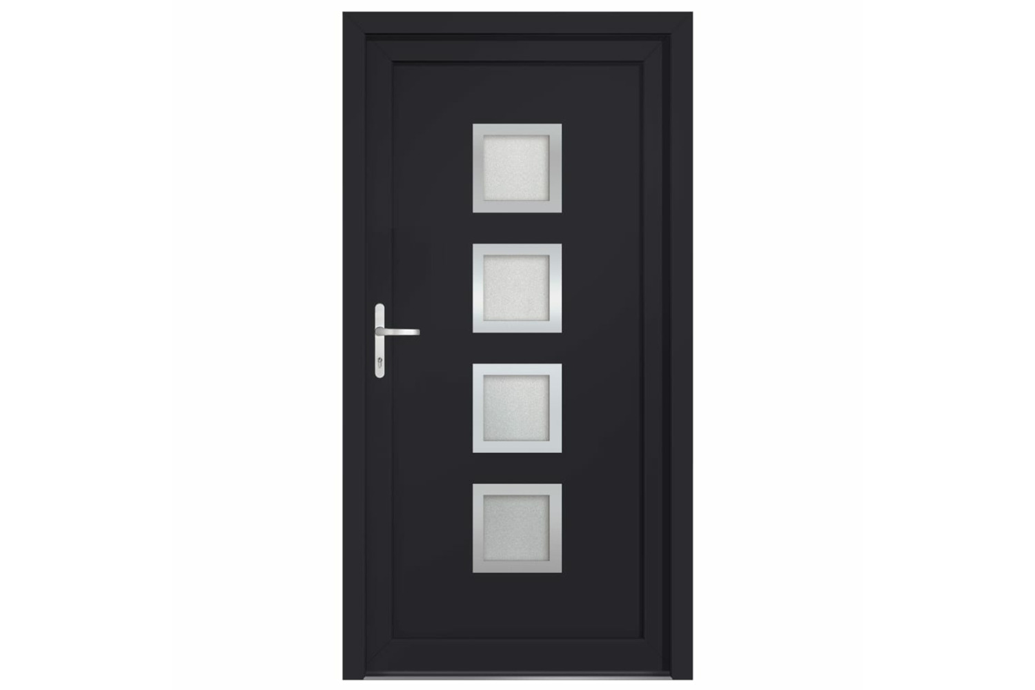 - Safe design: This entry door is equipped with a quality frame, aluminium threshold, 5-point mushroom pin locking, insulating glazing and 1,2 mm steel reinforcement to ensure additional security.