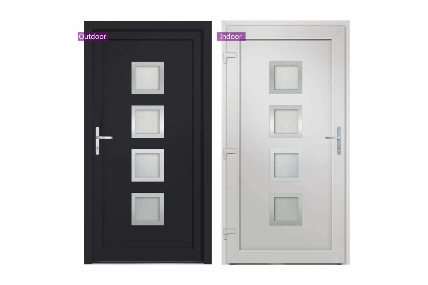 - Safe design: This entry door is equipped with a quality frame, aluminium threshold, 5-point mushroom pin locking, insulating glazing and 1,2 mm steel reinforcement to ensure additional security.