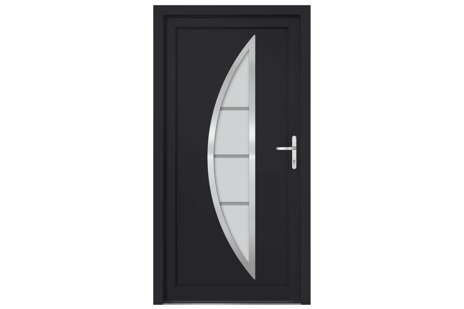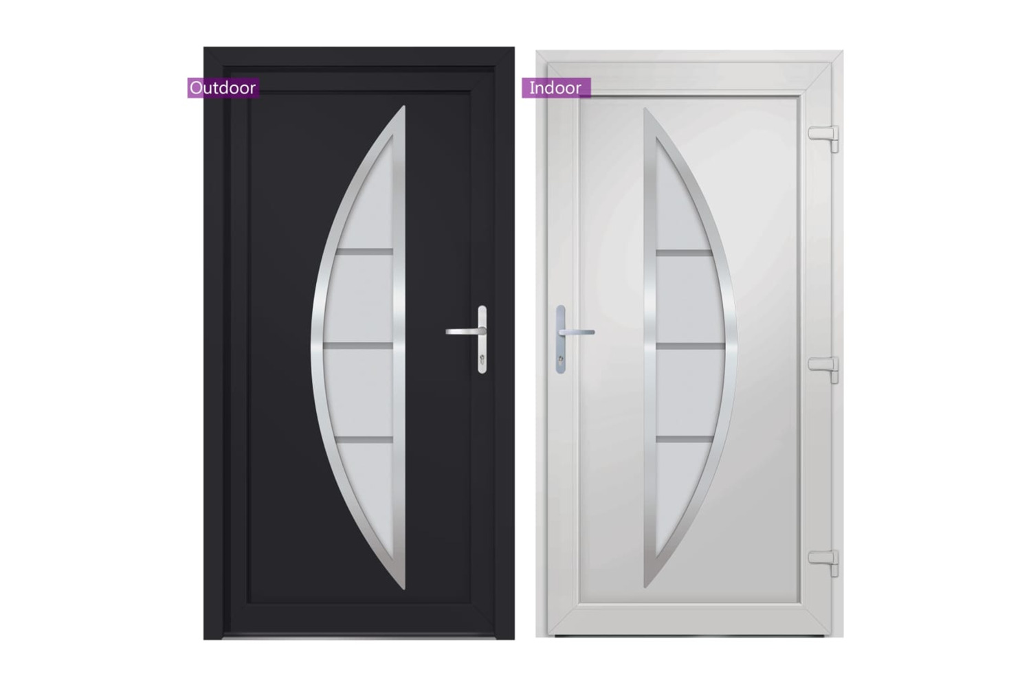 - Safe design: This entry door is equipped with a quality frame, aluminium threshold, 5-point mushroom pin locking, insulating glazing and 1,2 mm steel reinforcement to ensure additional security.