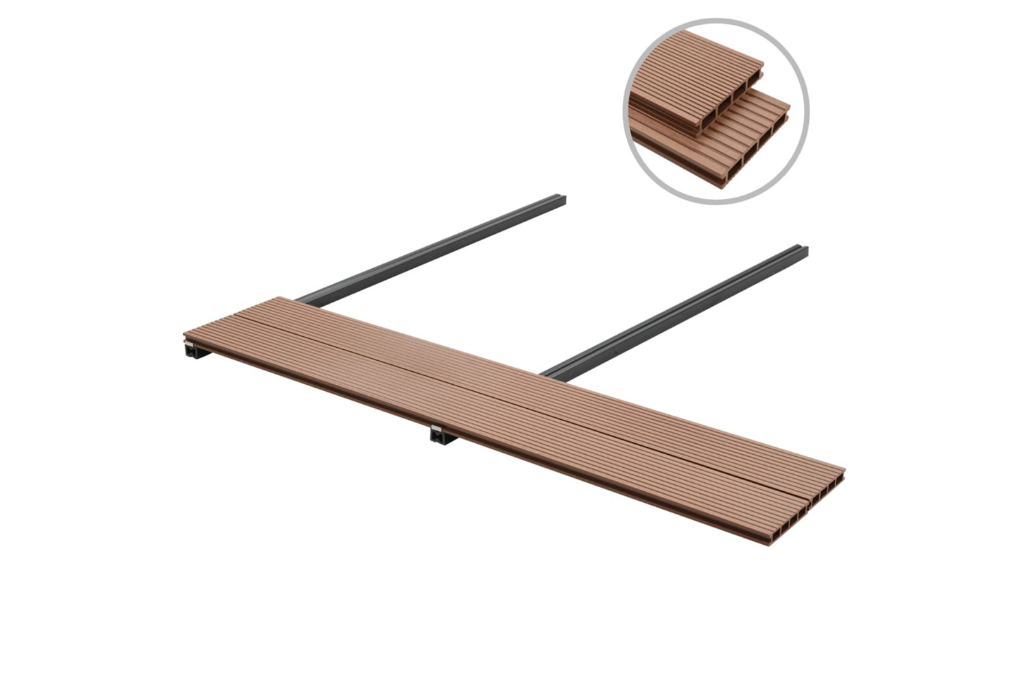 This complete WPC decking board set with accessories, making up a total size of 16 square metres, is perfect for patios, balconies, or areas next to a pool or spa.