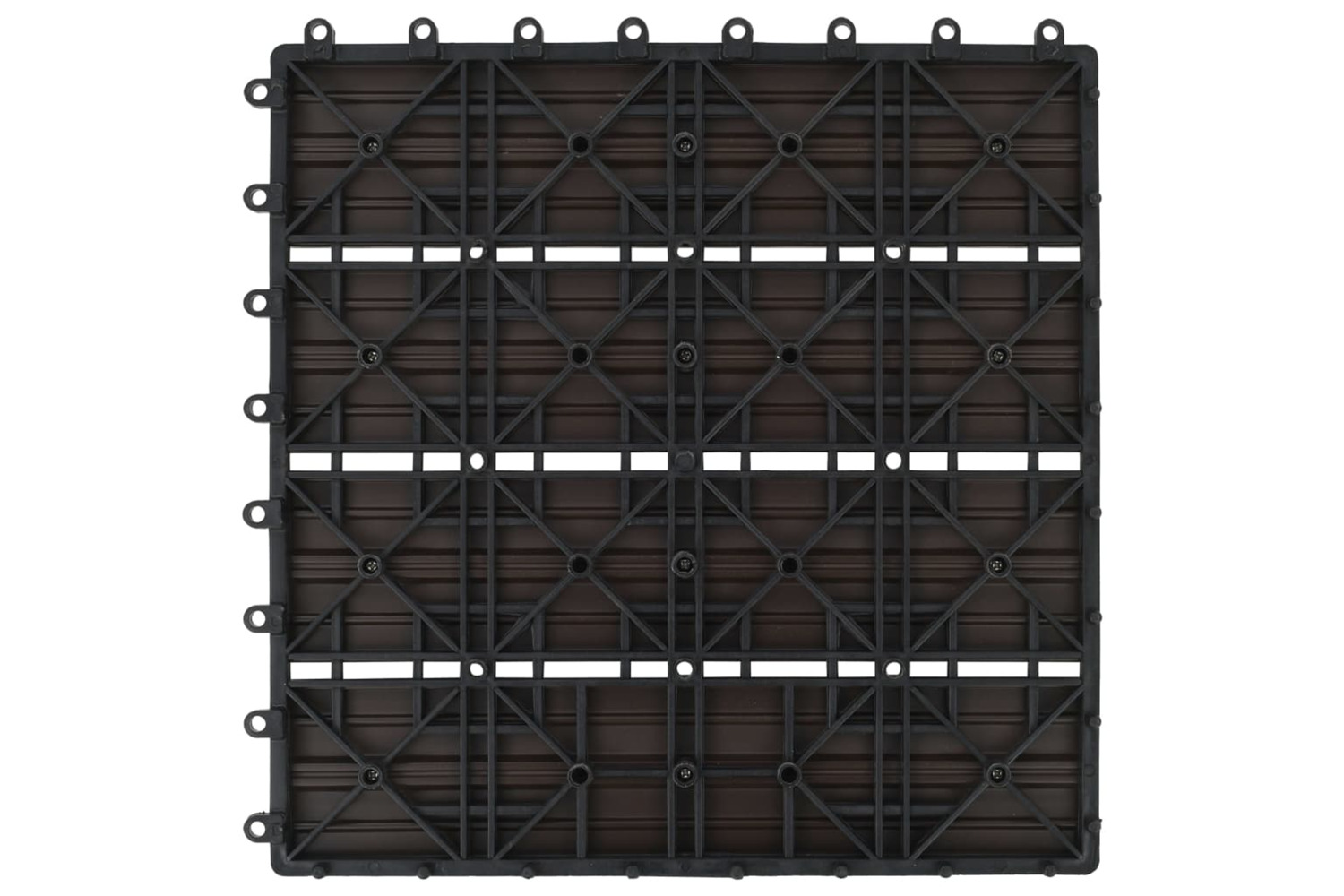 This WPC decking tile set, with an individual tile size of 30 x 30 cm, consists of 22 pieces and covers a total surface area of 2 square metres. It will be perfect for patios, balconies, bathrooms, or your pool or spa area.