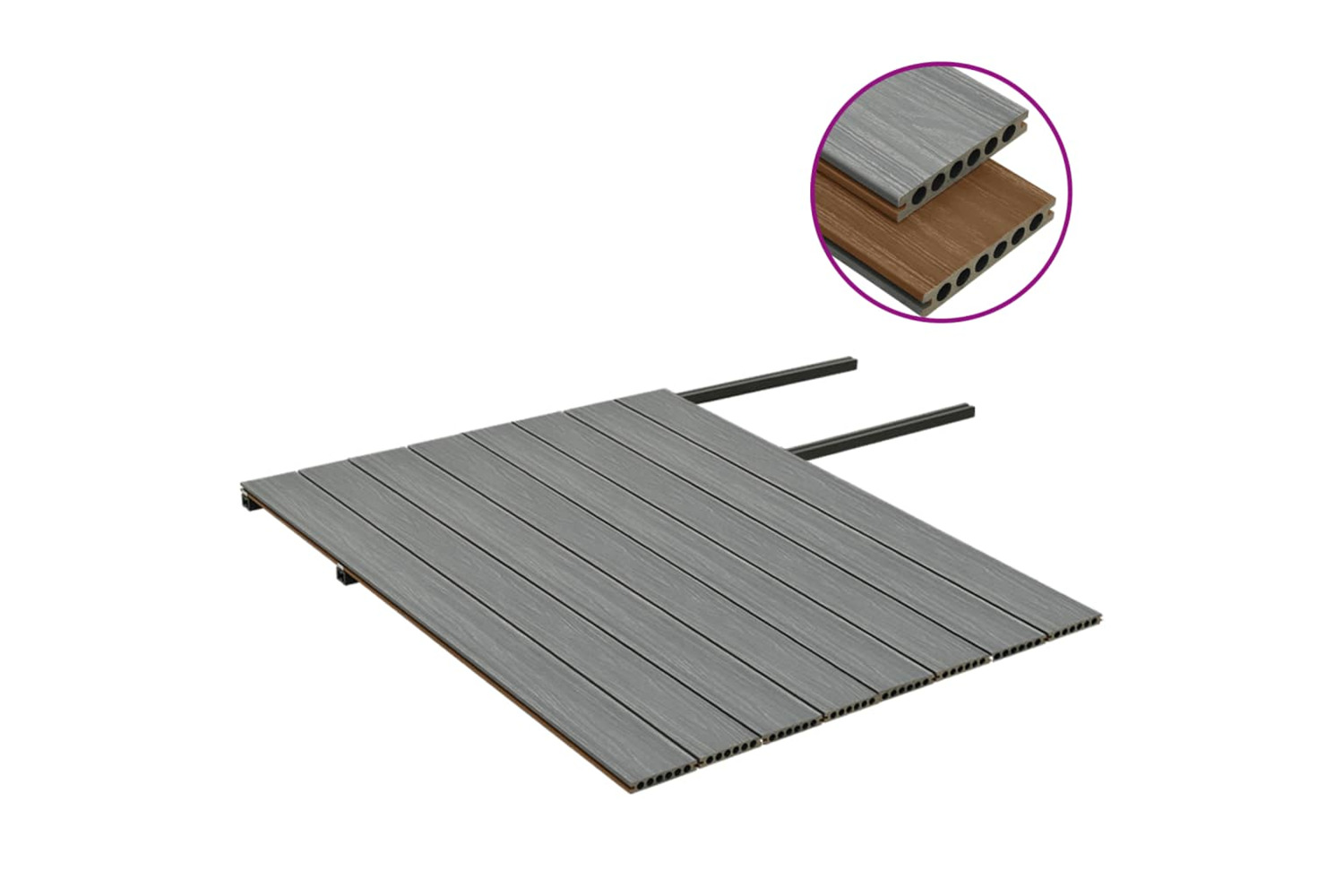 This complete WPC decking board set with accessories, measuring a total size of 16 square metres, is perfect for patios, balconies and areas next to a pool or spa.