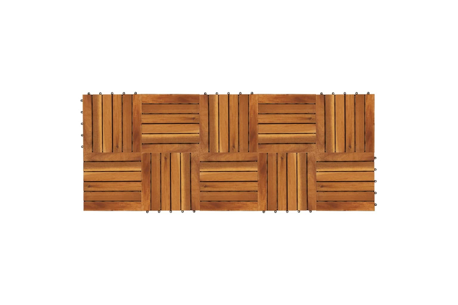The decking tiles are made of high-quality acacia wood, a tropical hardwood, which of course is weather-resistant and highly durable. Thanks to their plug-in connection, the tiles can be made to interlock easily and tightly to form a stable walking surface.