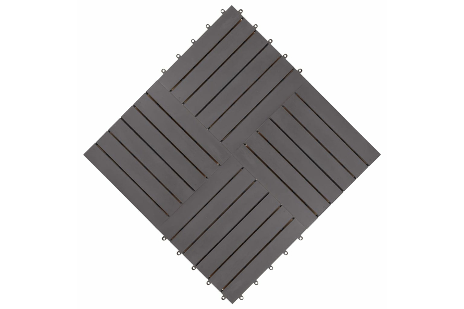 This set of 10 hardwood decking tiles is perfect for adorning surfaces or walkways in your garden, on your terrace or balcony, or any other room. The pattern is not only decorative, but adds a non-skid quality. The decking tiles are made of high-quality acacia wood, a tropical hardwood, which of course is weather resistant and highly durable. Thanks to their plug-in connection, the tiles can be made to interlock easily and tightly to form walking surface.