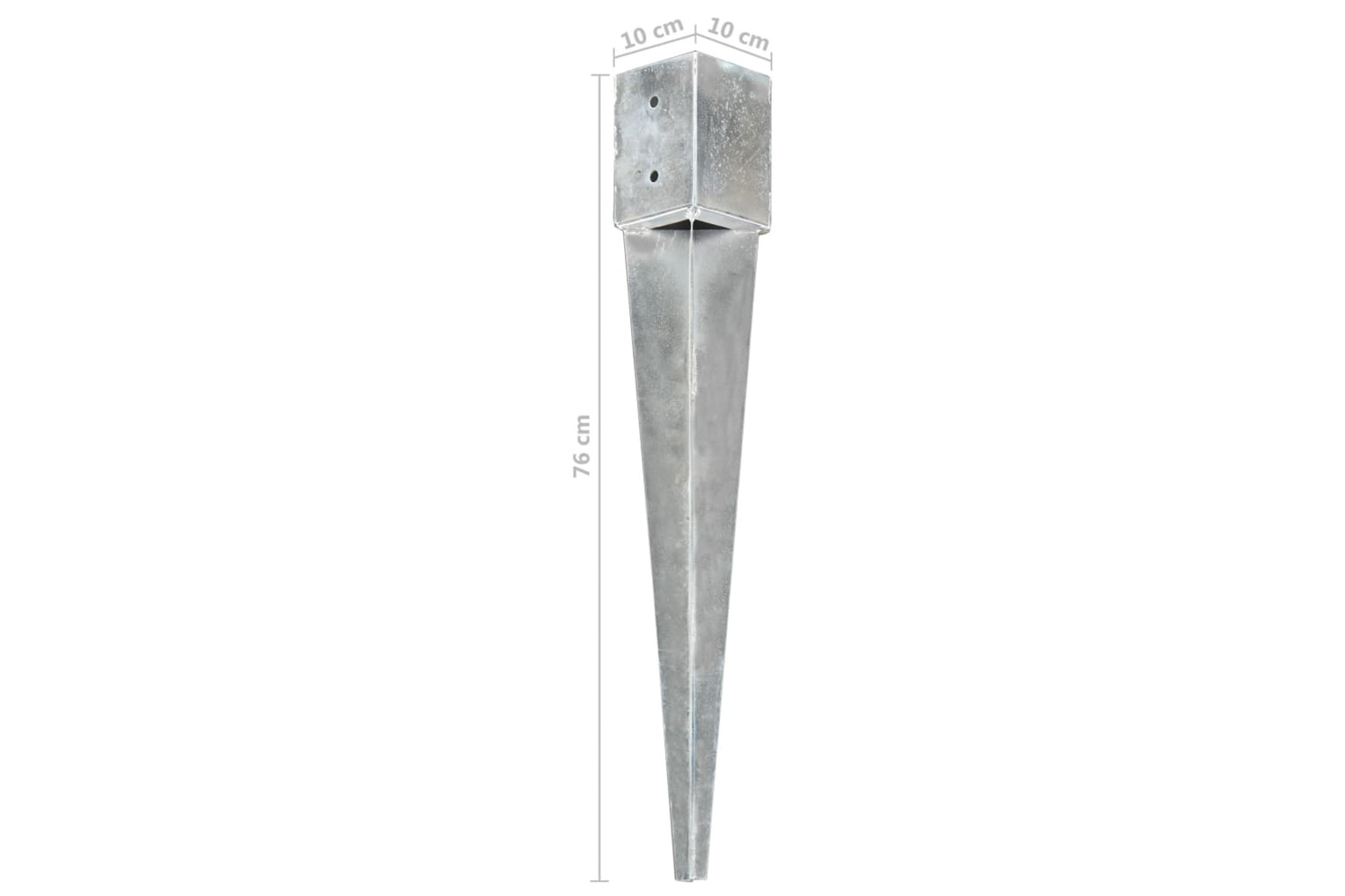 Featuring sturdy construction and spear end, the ground spear can be installed into ground with ease. Heavy-duty galvanised steel material ensures its durability and long term use. Additionally, with pre-drilled holes, these soil spears will provide a secure base and safe location when installing garden fences, arches and other outdoor works.