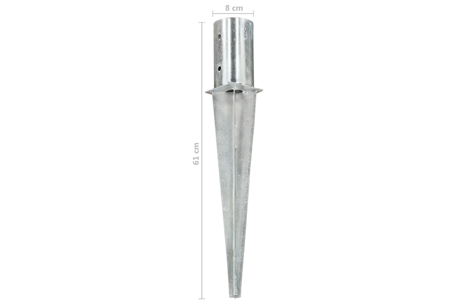 Featuring sturdy construction and spear end, the ground spear can be installed into ground with ease. Heavy-duty galvanised steel material ensures its durability and long term use. Additionally, with pre-drilled holes, these soil spears will provide a secure base and safe location when installing garden fences, arches and other outdoor works.