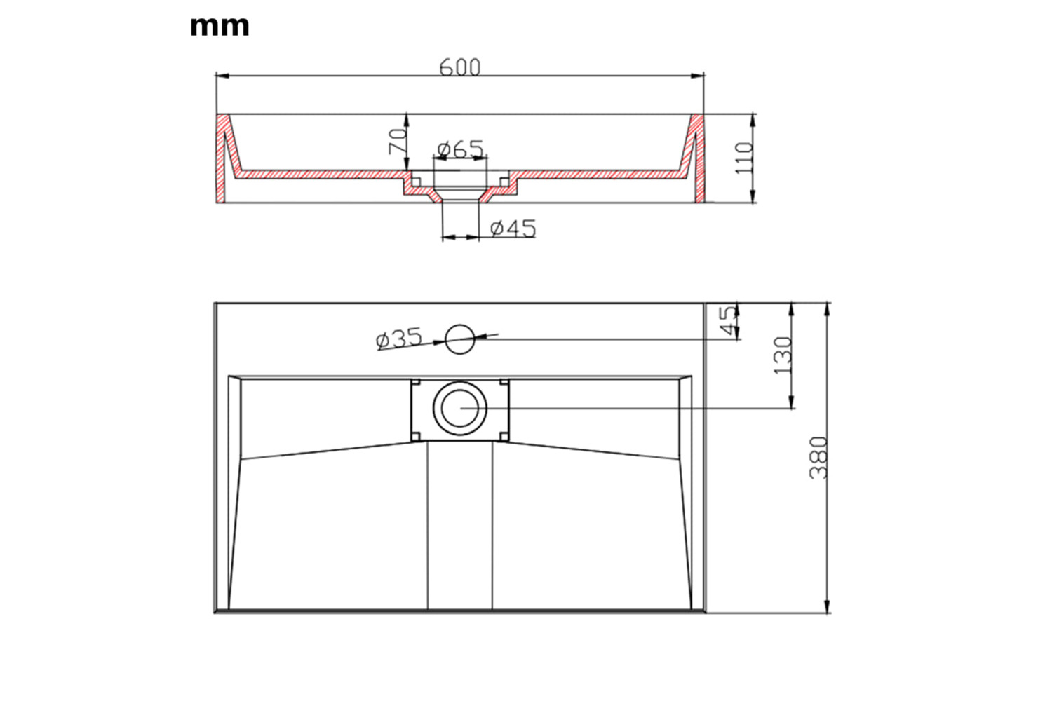 - Faucet hole diameter: 3.5 cm