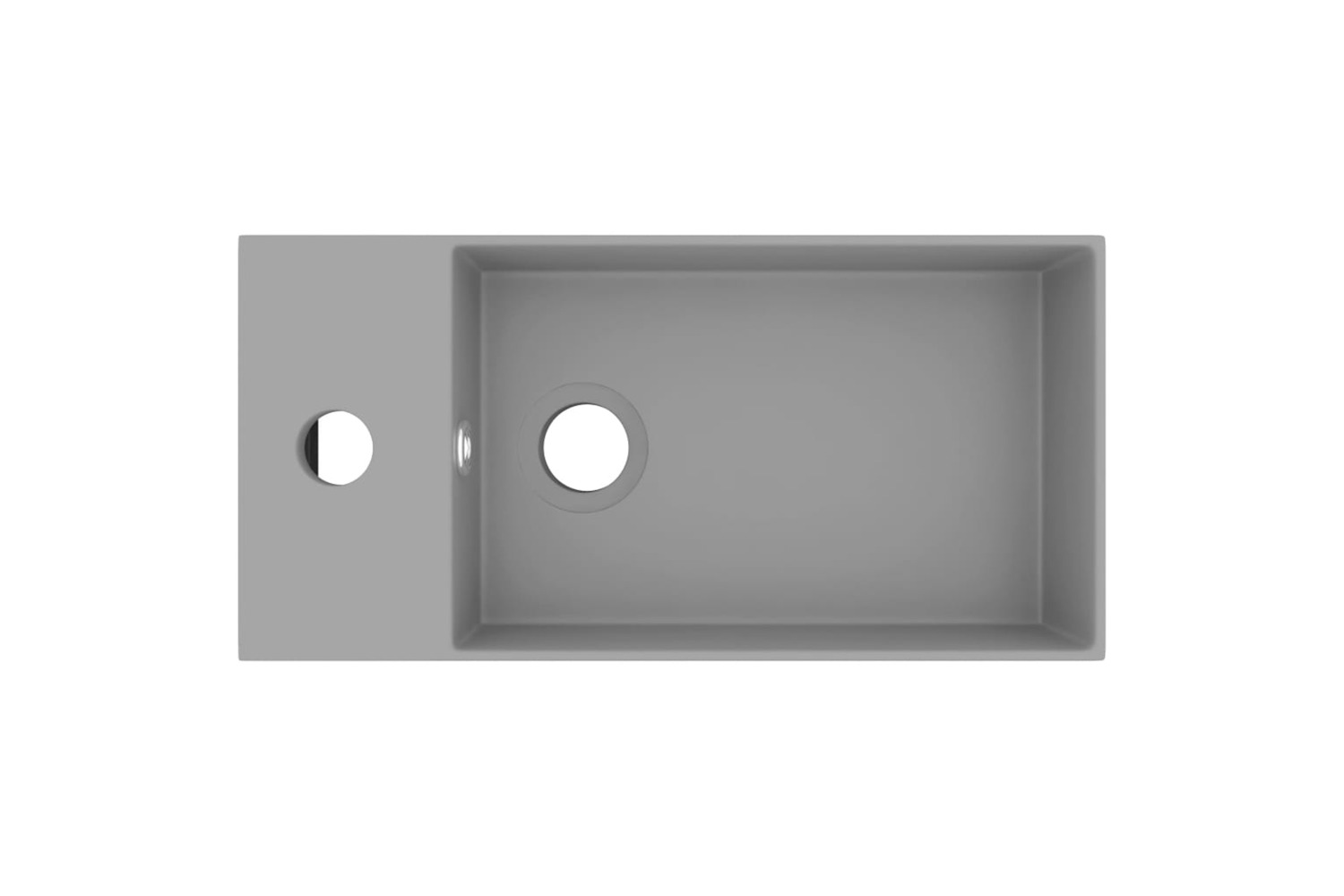 The quality ceramic with a matt surface is easy to clean. An overflow hole is equipped to flow water out when it gets full. A faucet hole is included to install a tap. The drain hole is 4.5 cm in diameter. You can install it on the countertop. Please note: The tap is not included in the delivery.