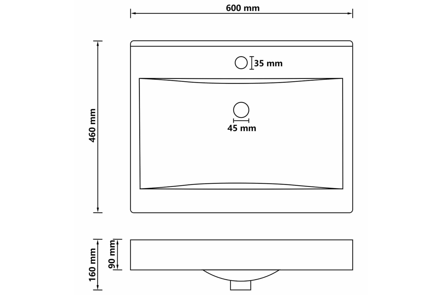 - Basin height: 90 mm