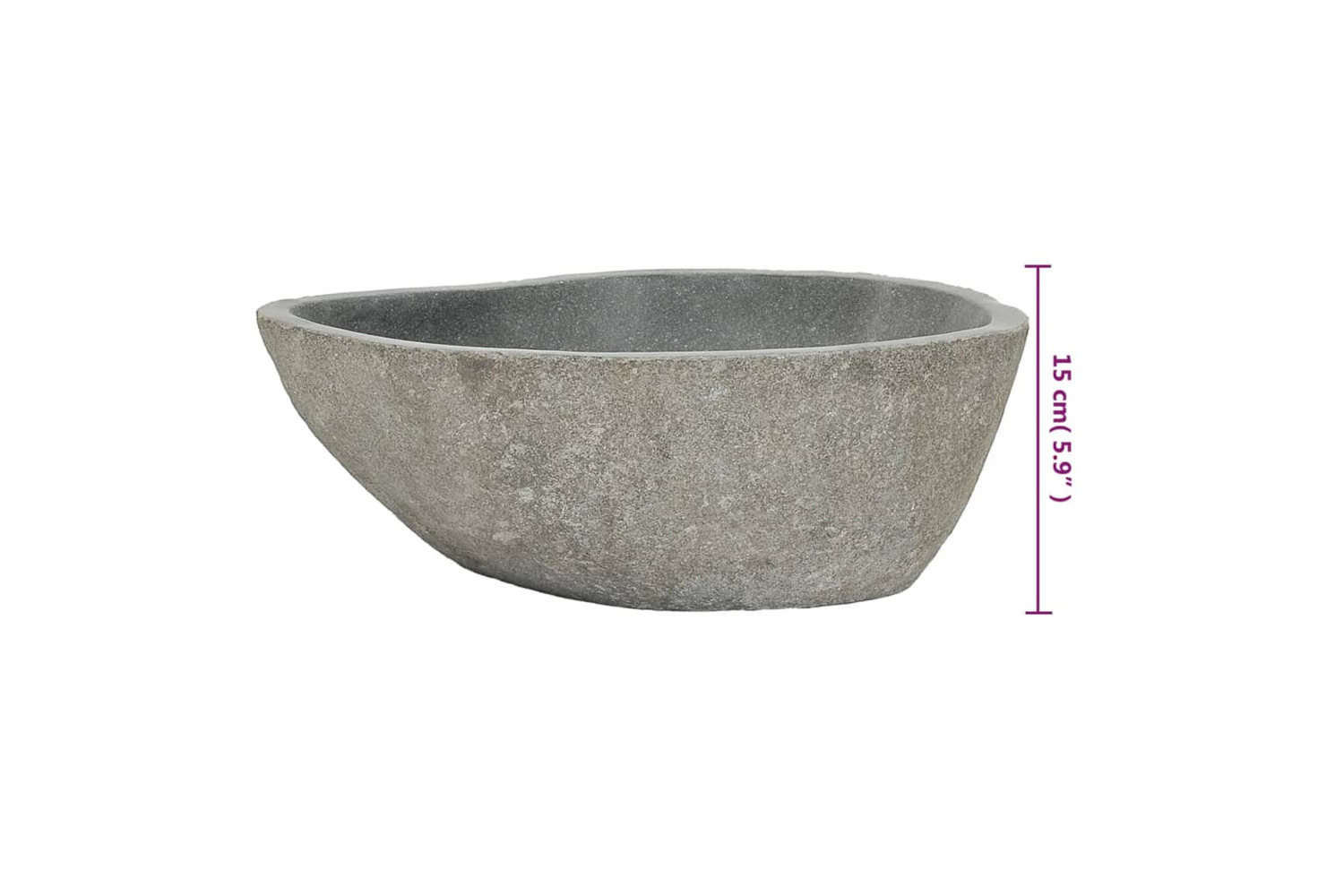 This oval-shaped wash basin, made of natural river stone, will make a stylish addition to any bathroom or washroom.