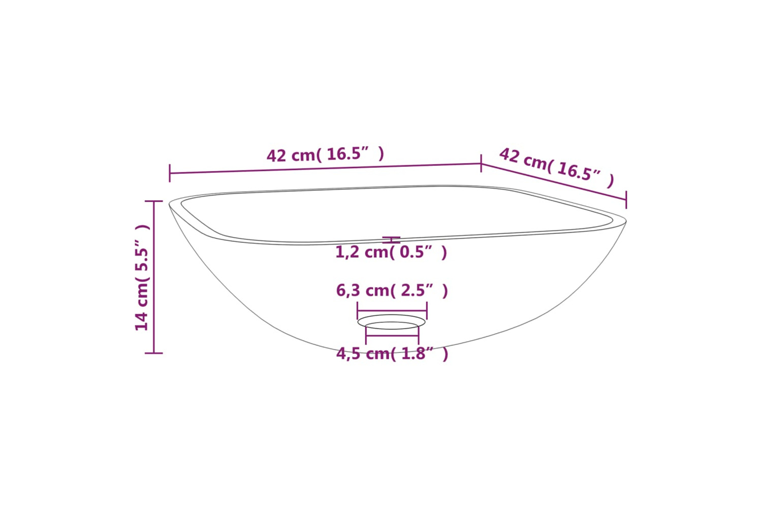 - Drain hole diameter: 4.5 cm