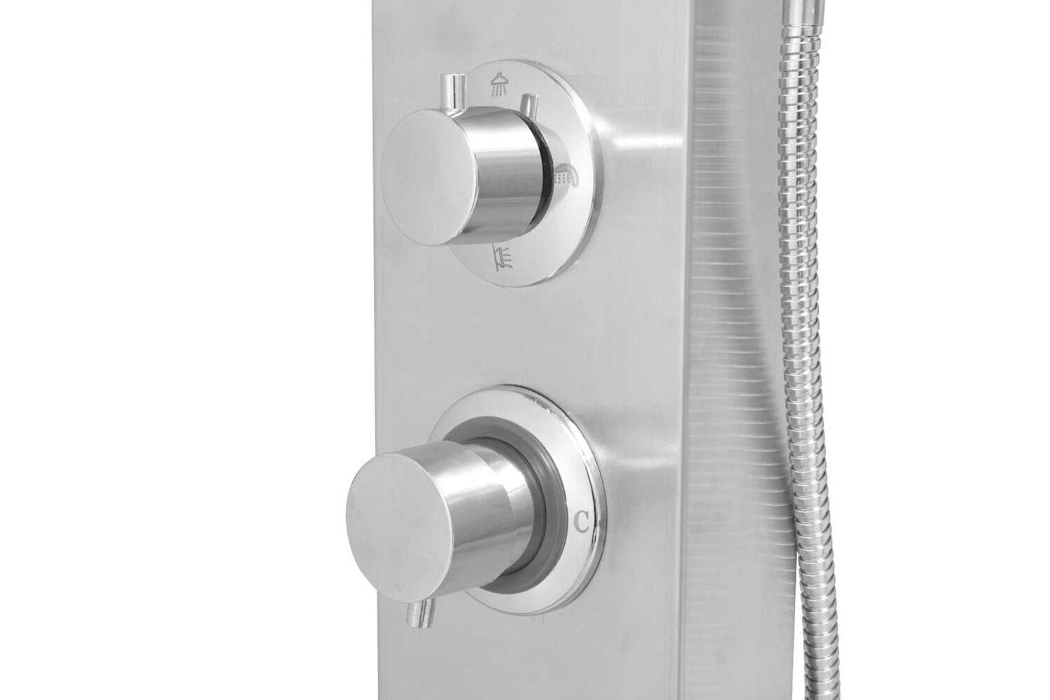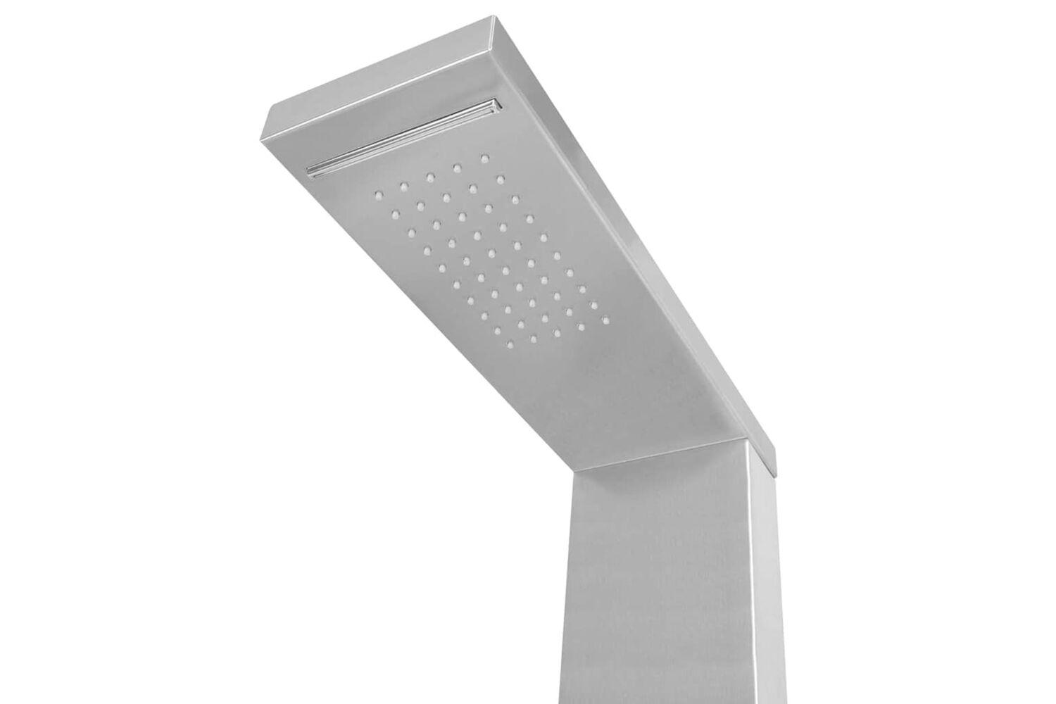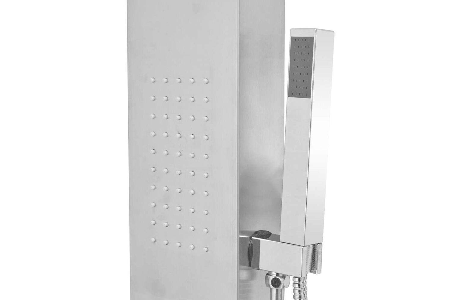 The shower tower is made of durable stainless steel with a brushed finish and has a beautiful, square design. It has four functions: rainfall, waterfall, massage jets and a handheld showerhead, which can be easily selected by means of a knob.