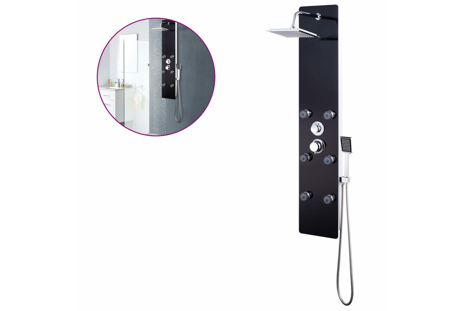- Functions: Rain shower, 6 body massage jets, handheld shower