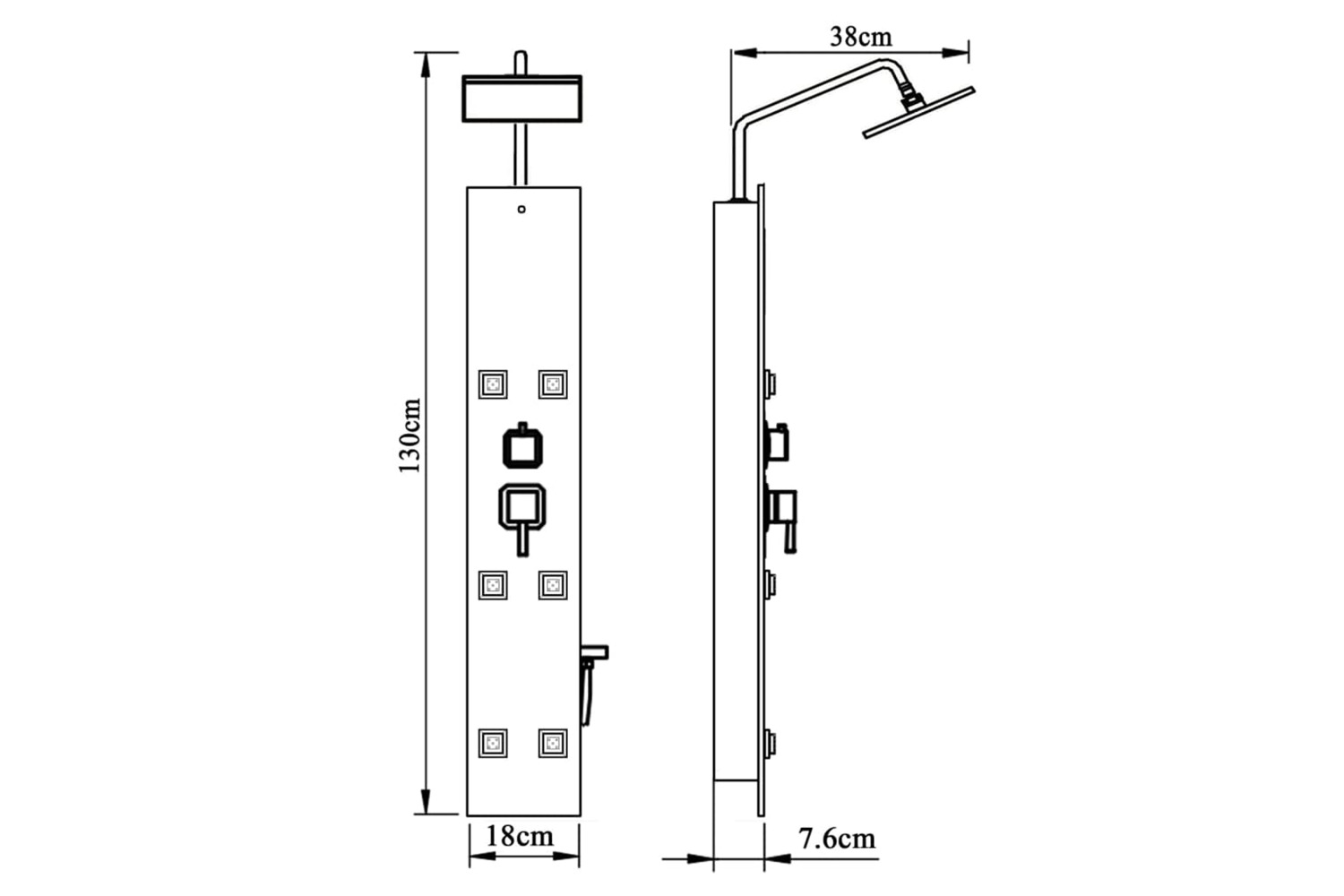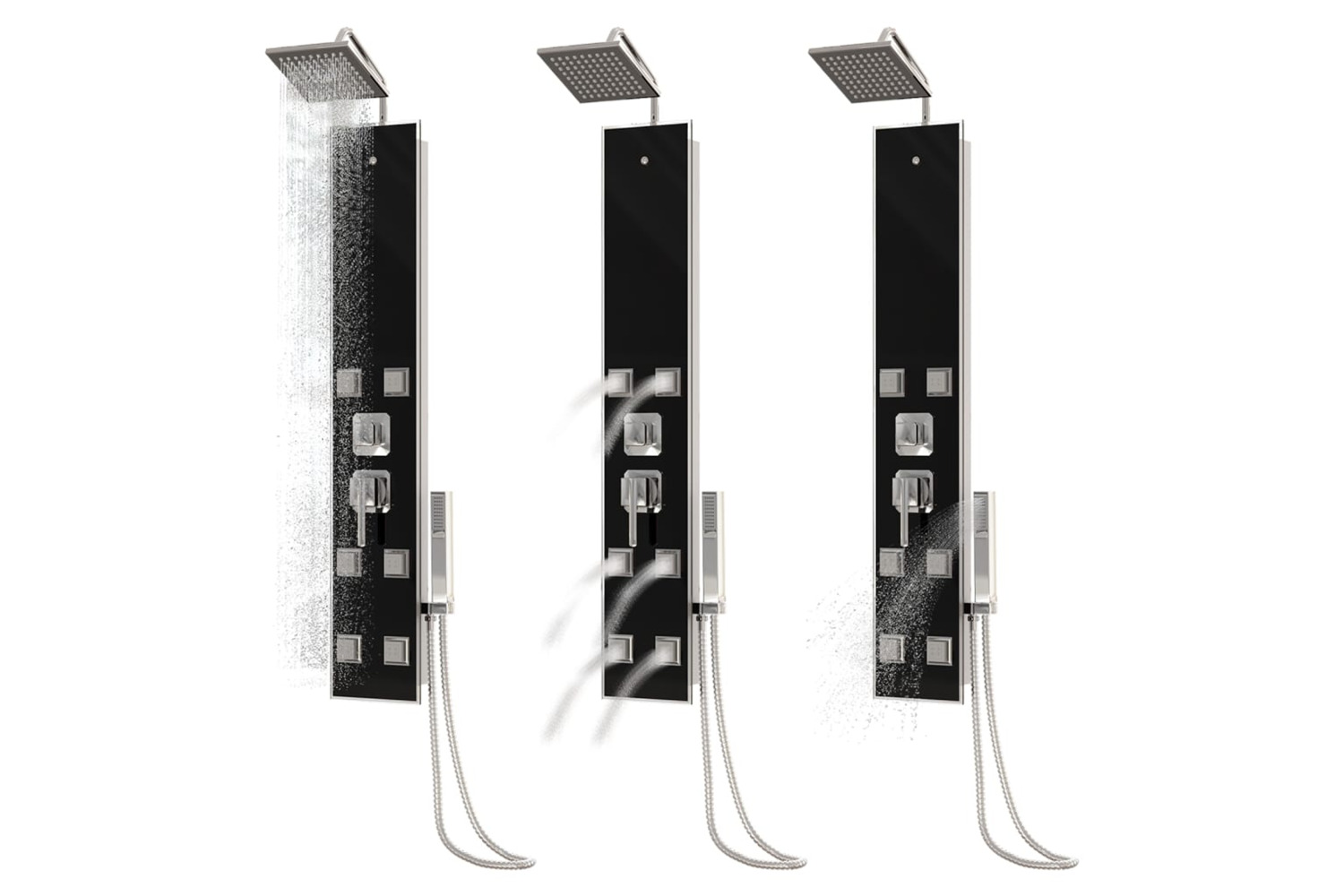 The shower tower is made of stainless steel and tempered glass. Tempered glass is produced with a controlled thermal or chemical treatment, which makes it more durable and safe compared to normal glass. It has three functions of showering mode: rain shower, massage spray and handheld shower, which can be easily selected. The silicone nozzles are resistant to limescale buildup.
