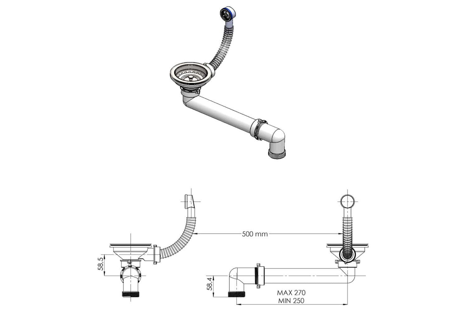 - Basket strainer included